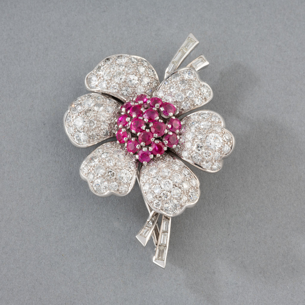 15 Carats Rubies and Fine Stones Vintage Brooch