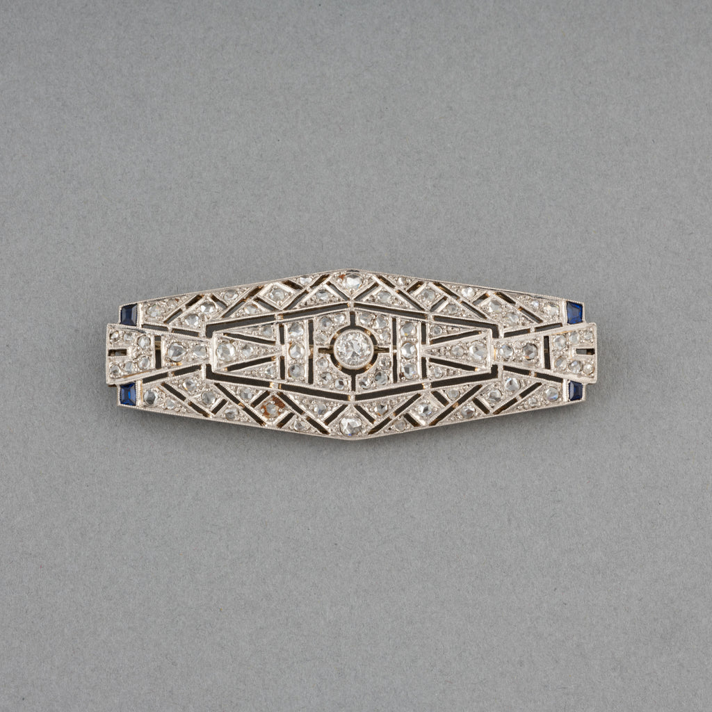 9 Carat Sapphires and 0.80 Carats Diamonds French vintage Brooch