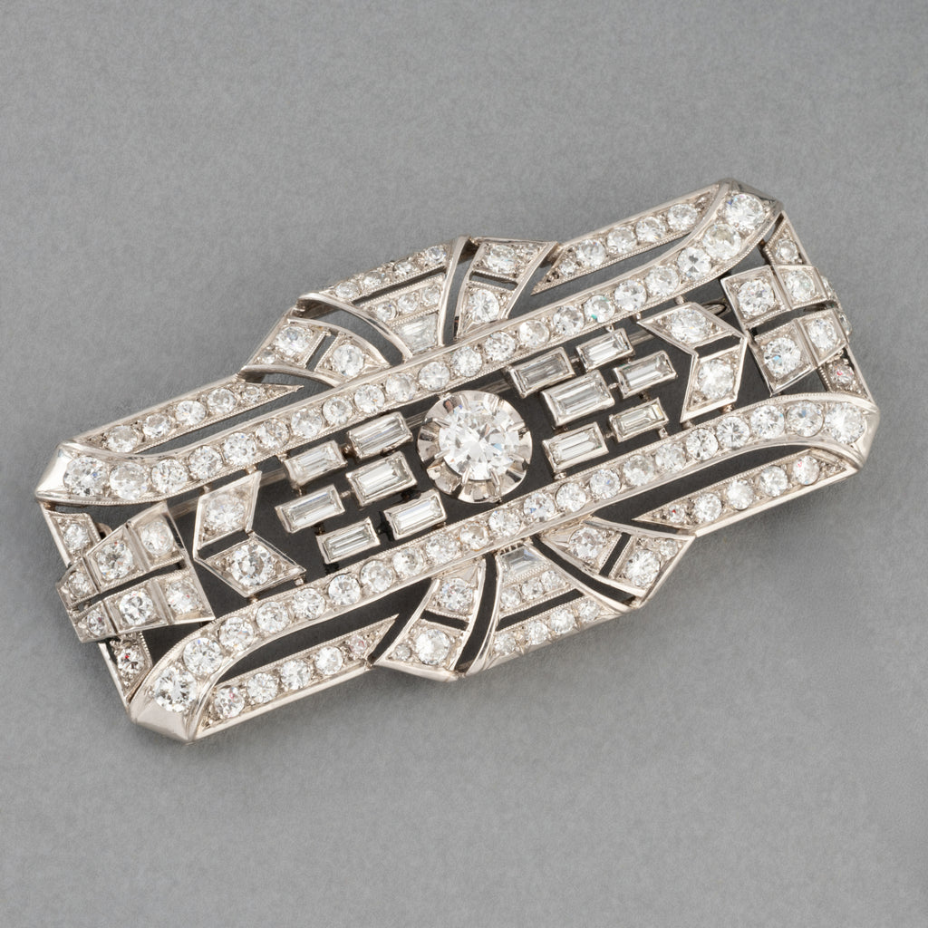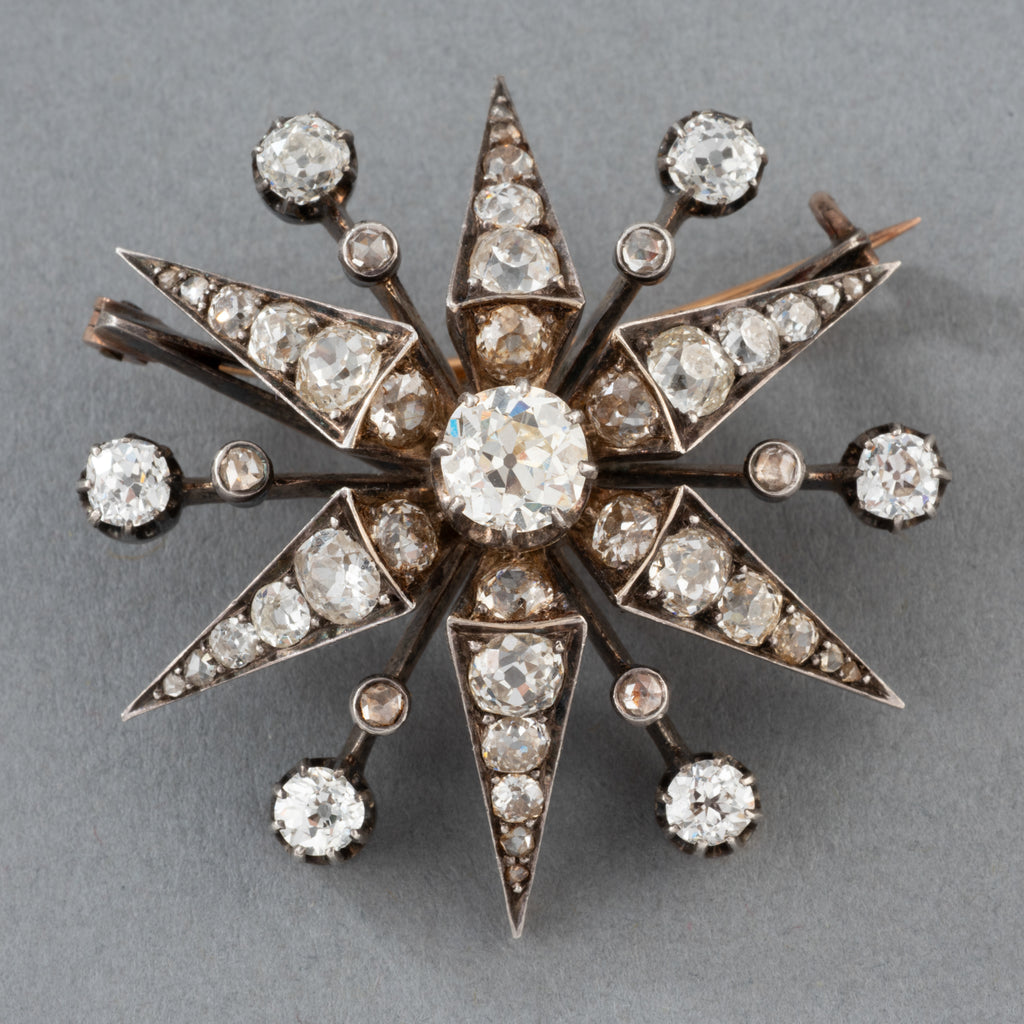 Gold and 12 Carats Diamonds French Vintage Brooch