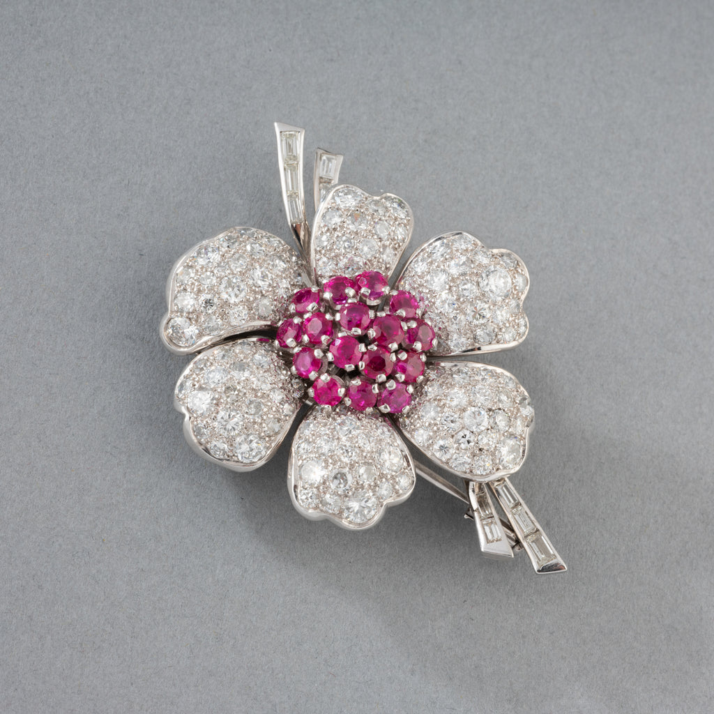 A very lovely brooch, made in white gold 18k. Made circa 1960.