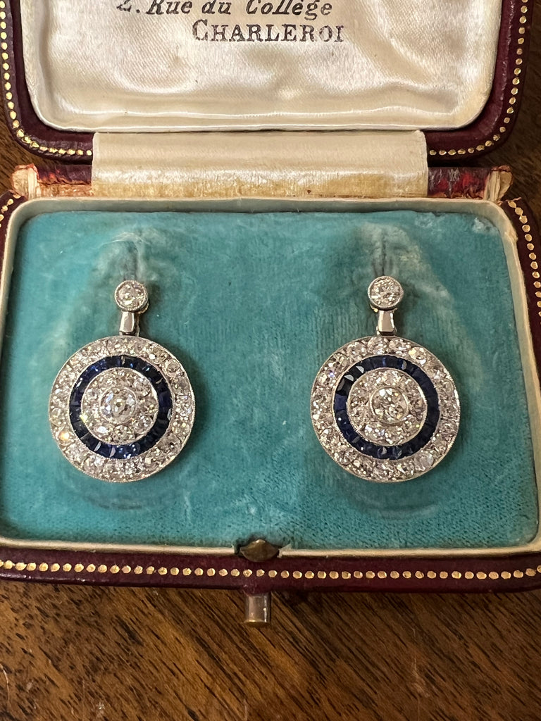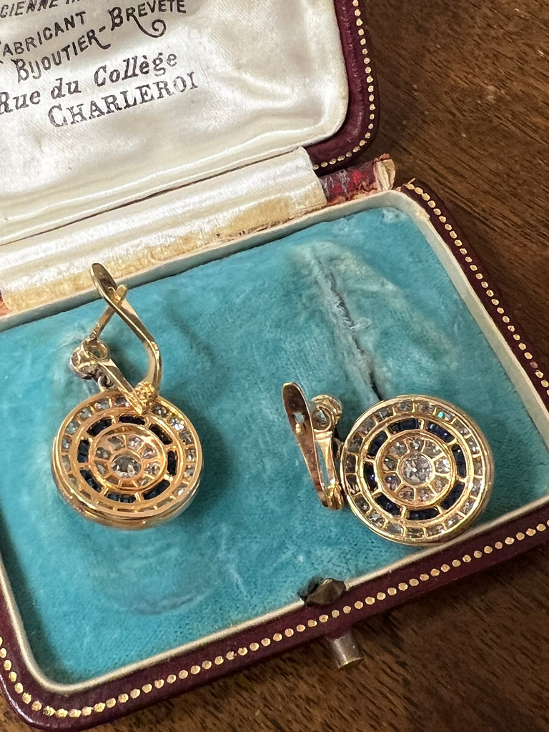 A very lovely pair of earrings, made circa 1920. Made yellow gold and platinum. In their original boxe of a Belgium jeweller.