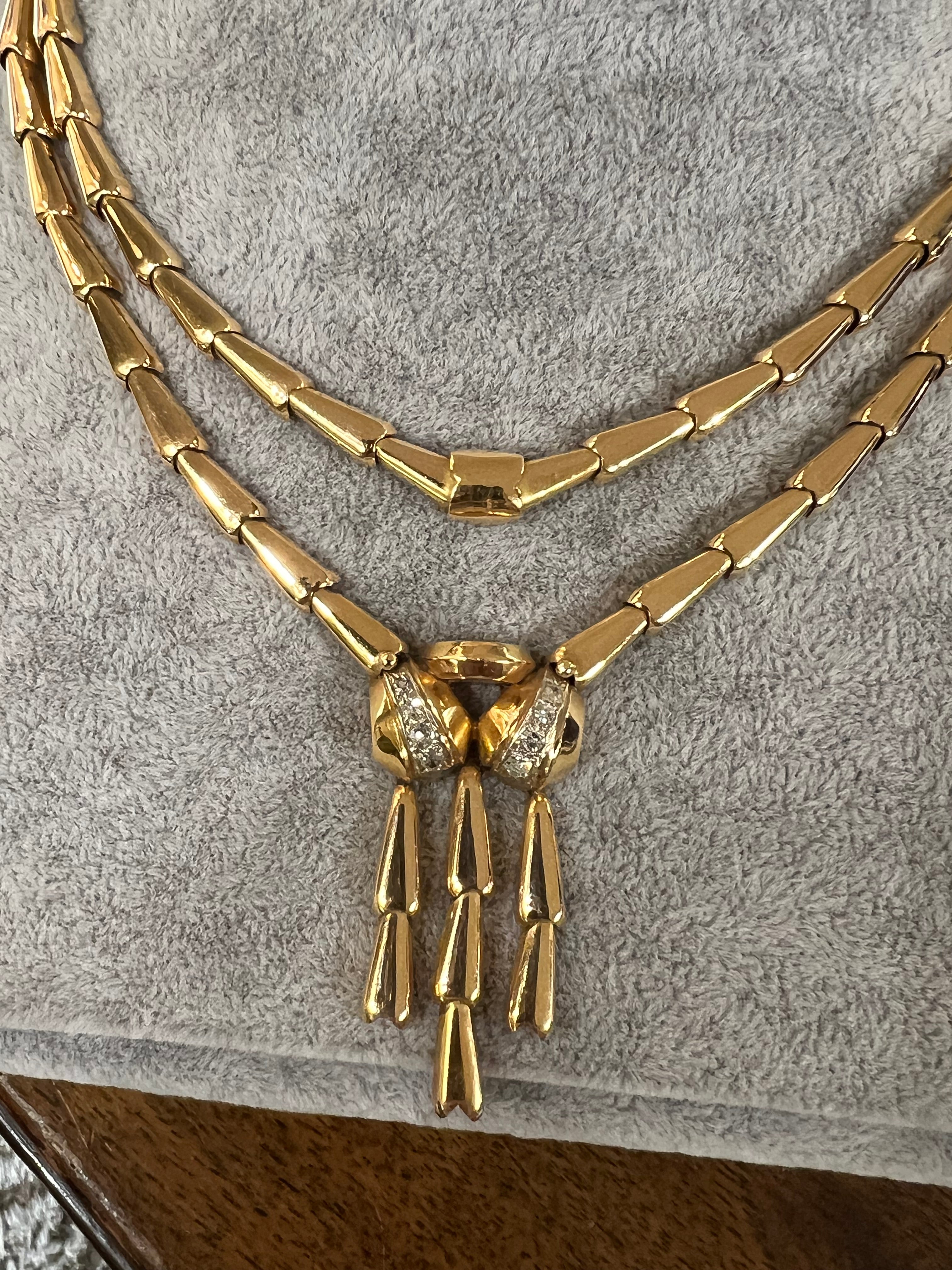 A very lovely necklace, made in France circa 1945. Made in yellow gold 18k and set with diamonds.