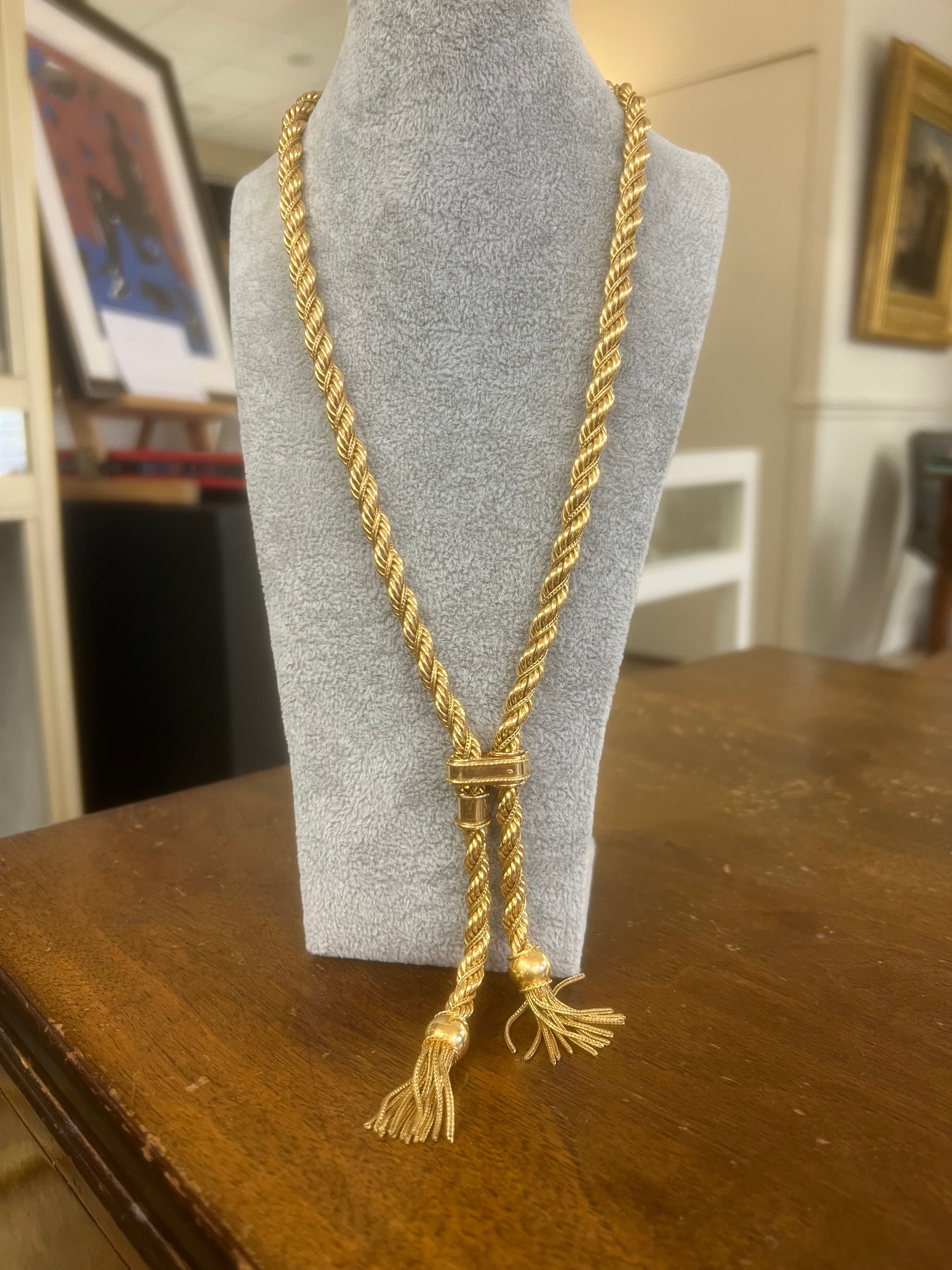 French Vintage Yellow Gold Necklace with Tassels