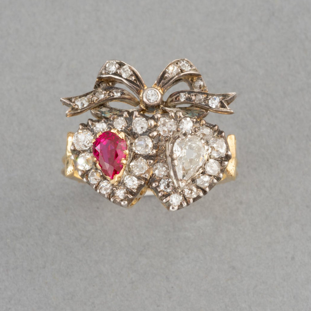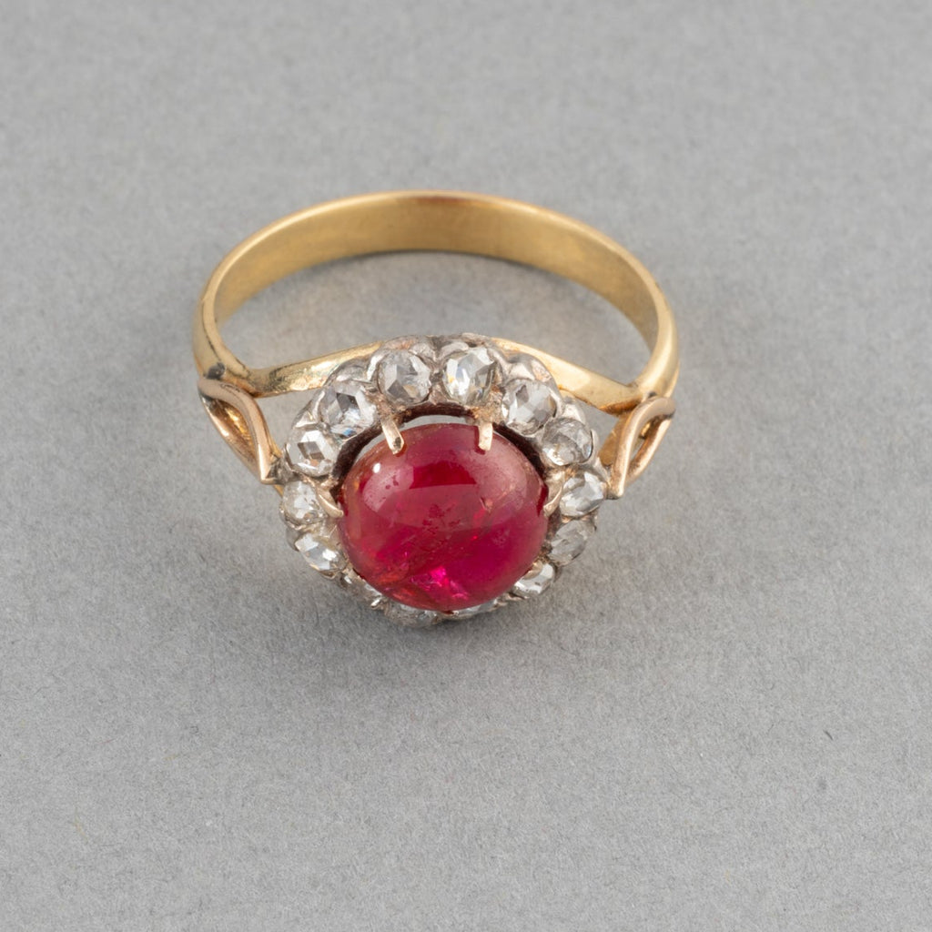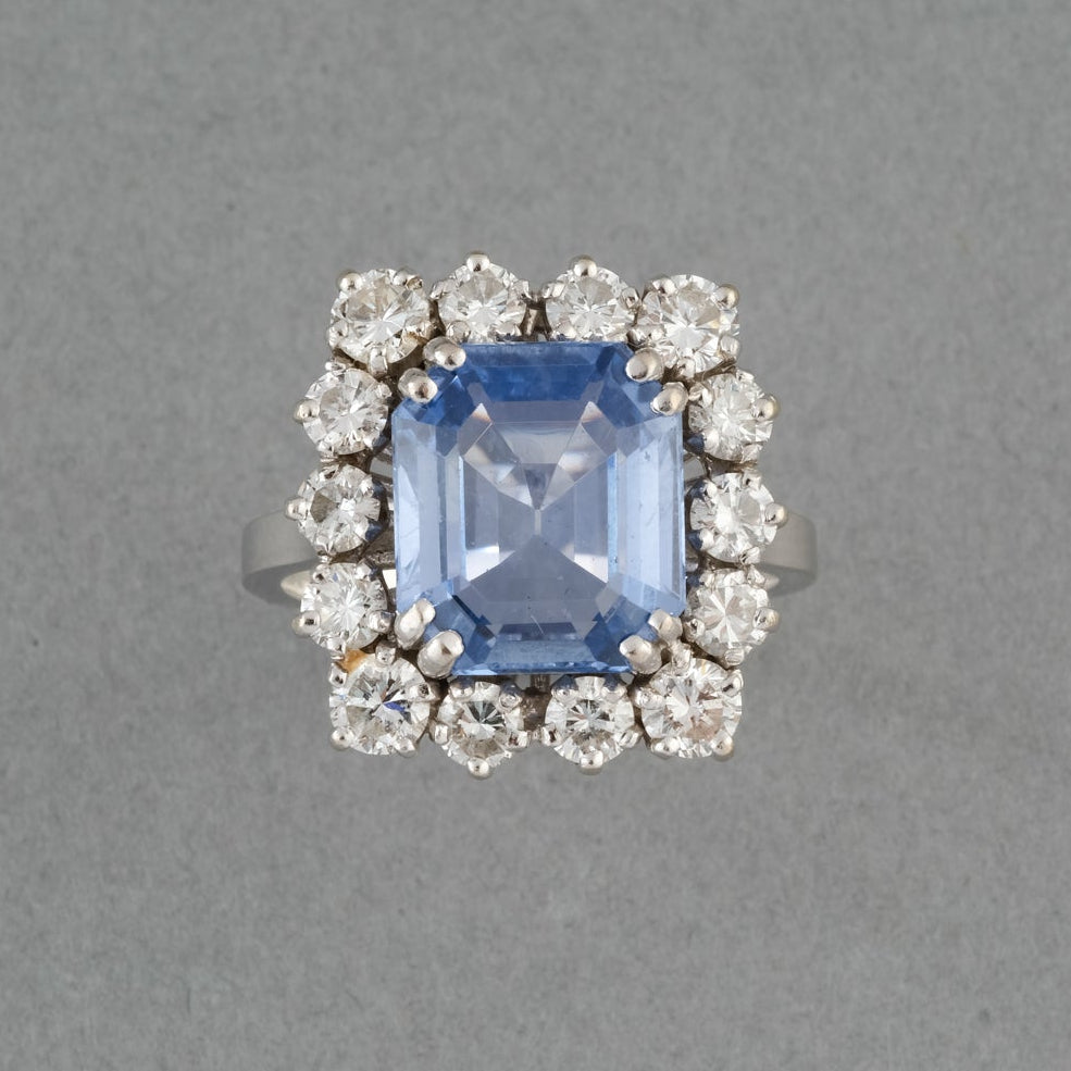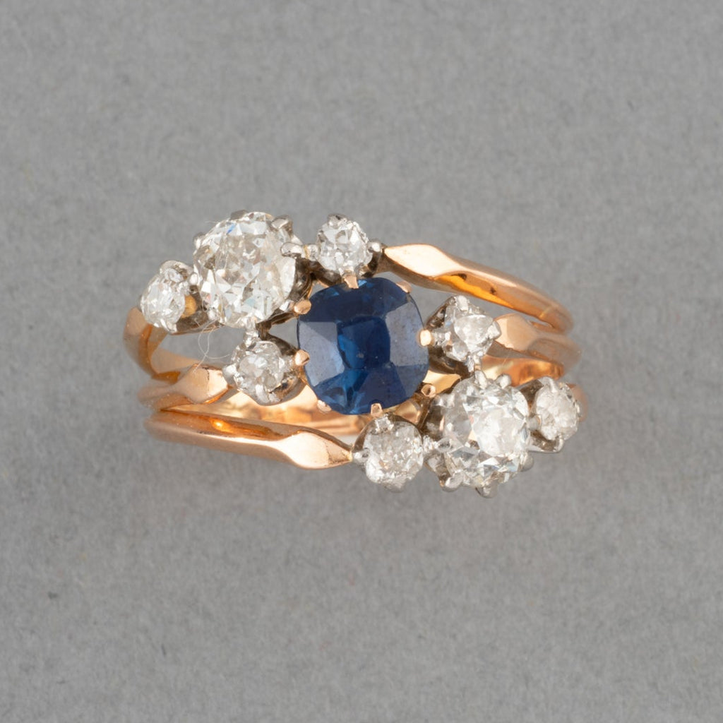 French Vintage 4 Carats Sapphire and Diamonds Ring