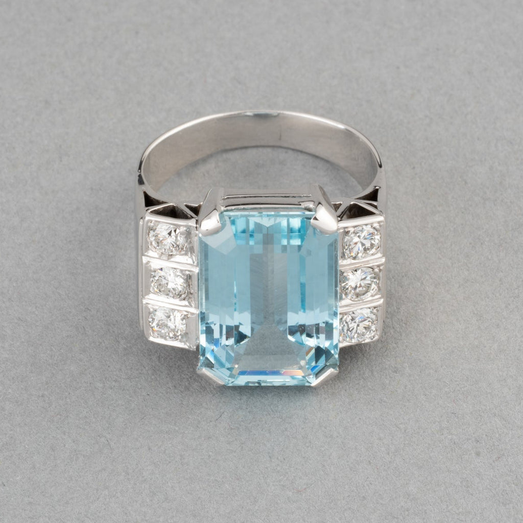 Platinum Diamonds and Aquamarine French Vintage Ring