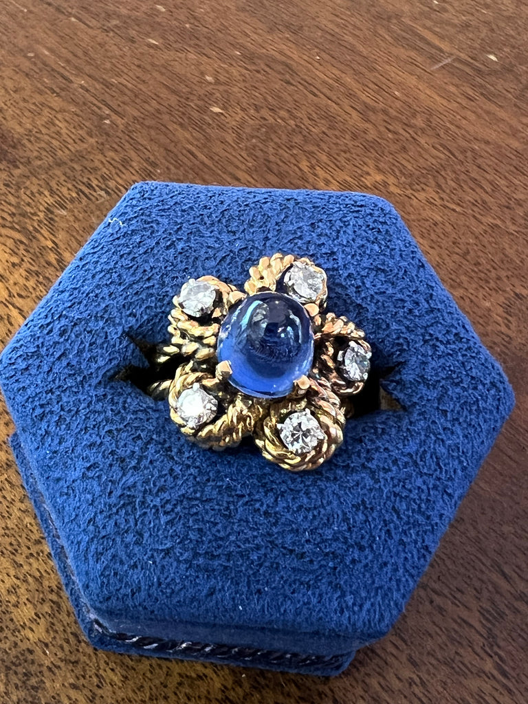 5 Carats Sapphire and Diamonds French Vintage Ring