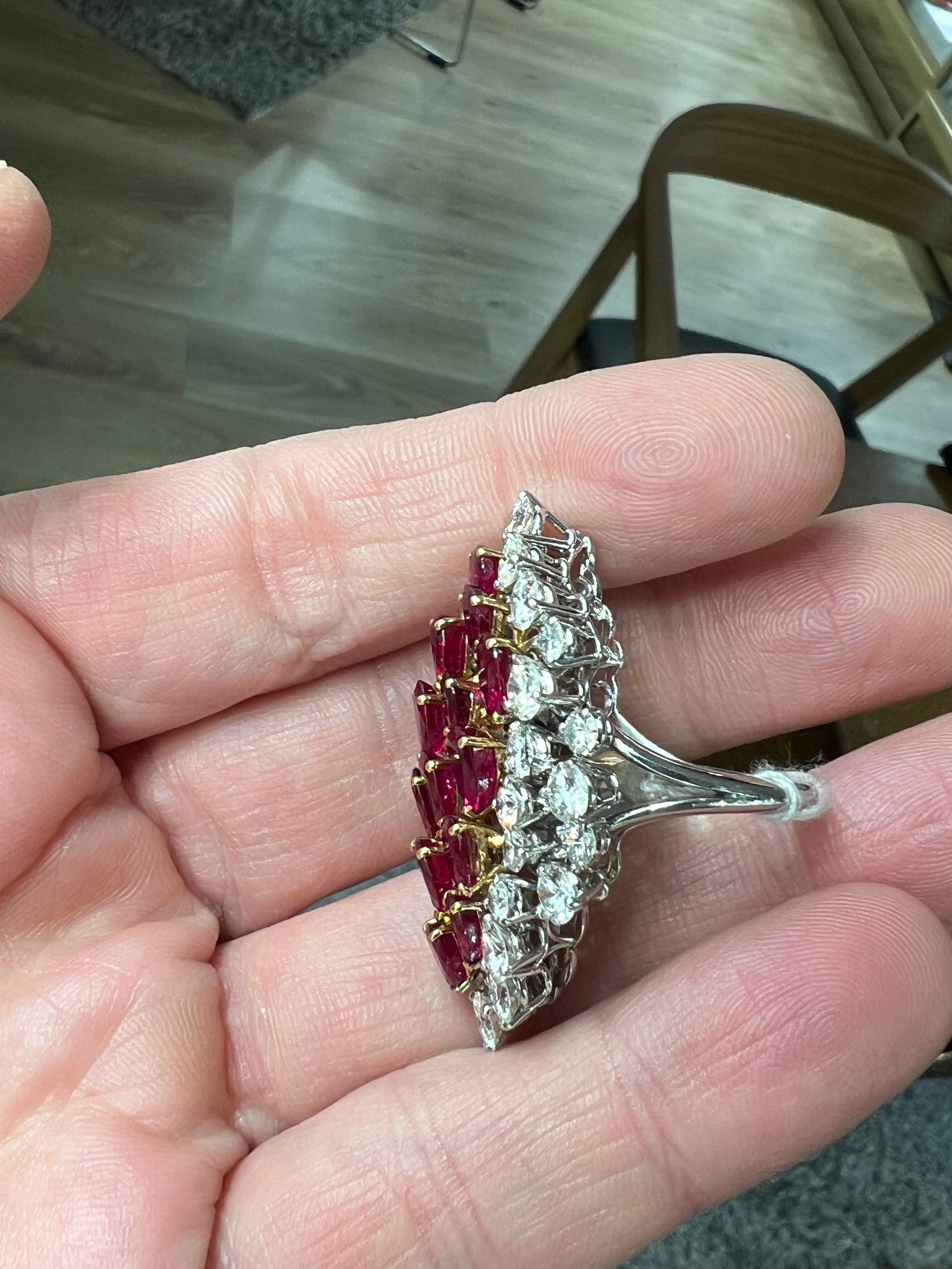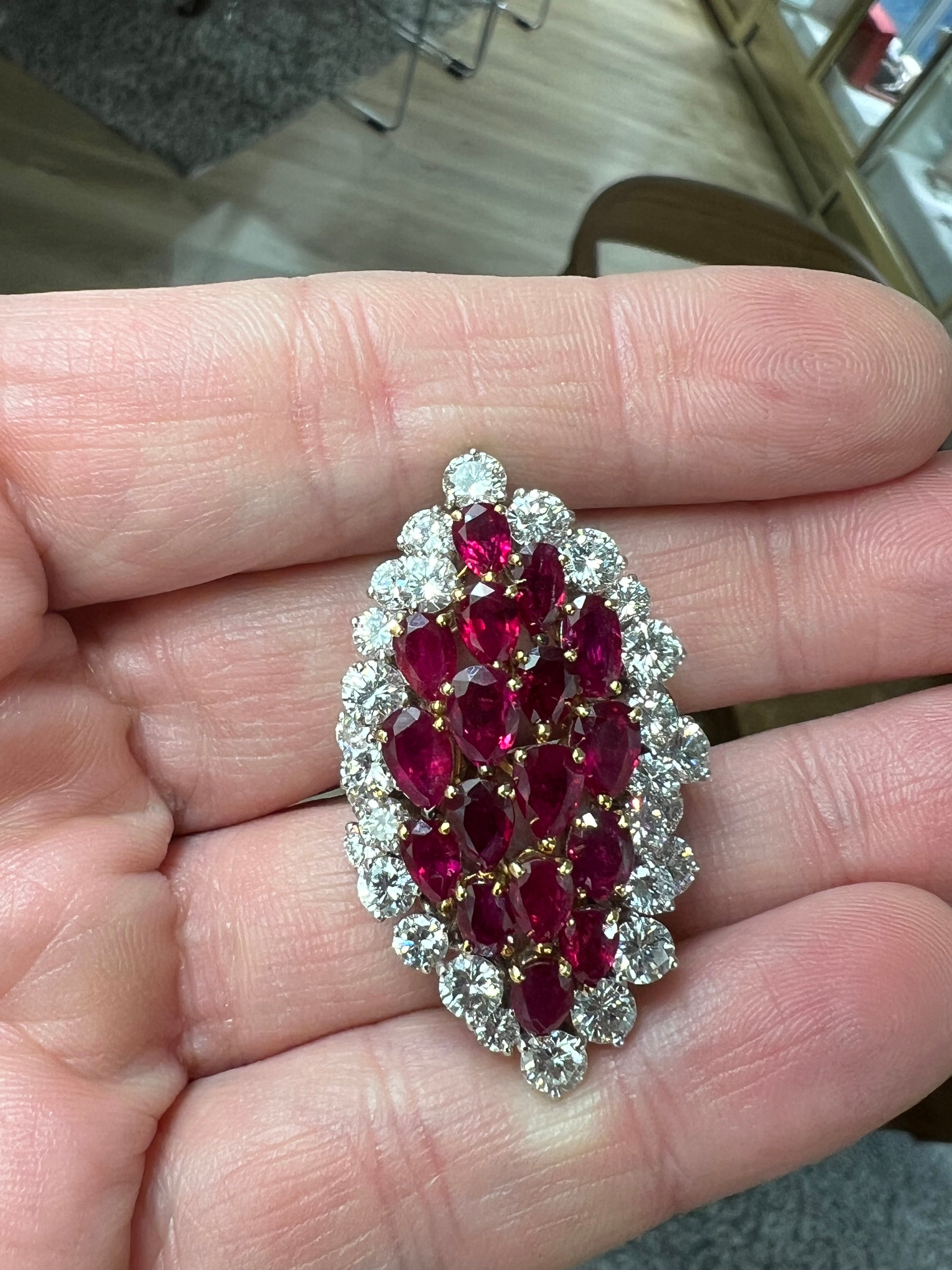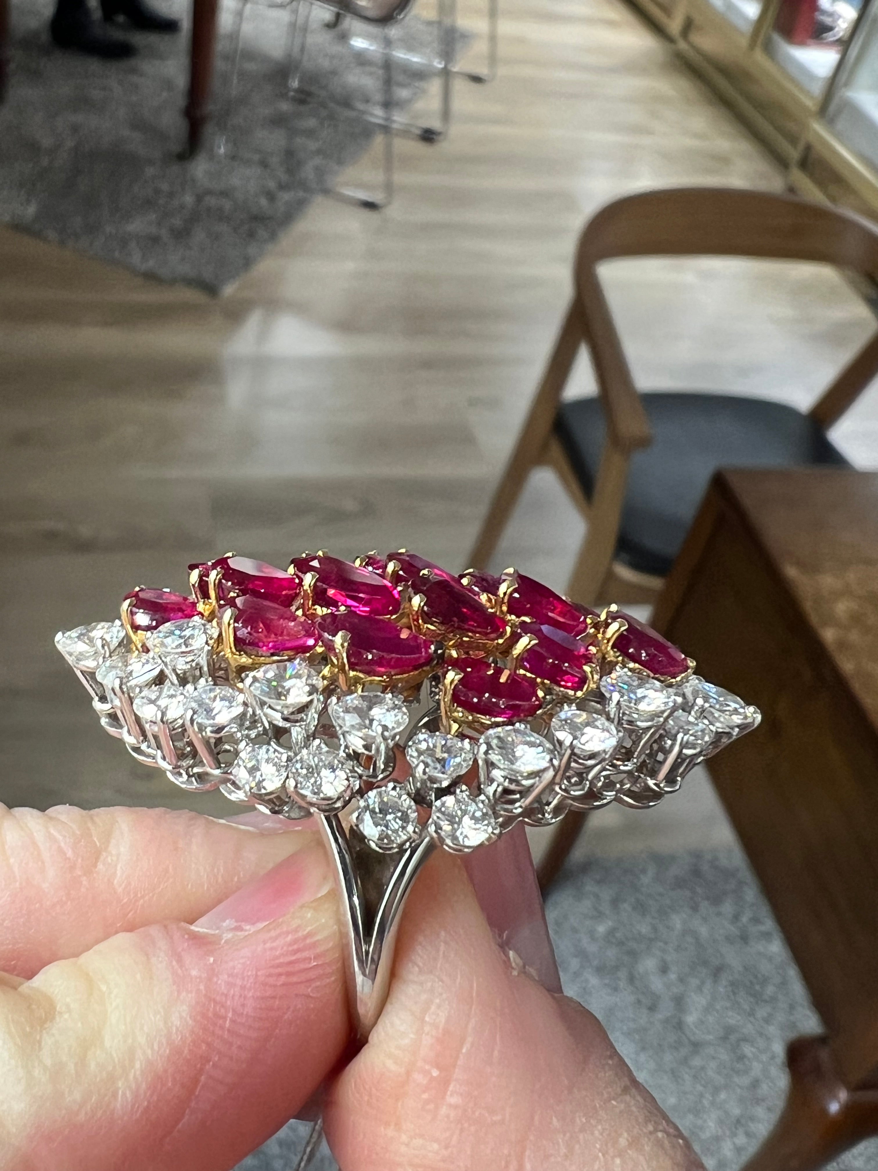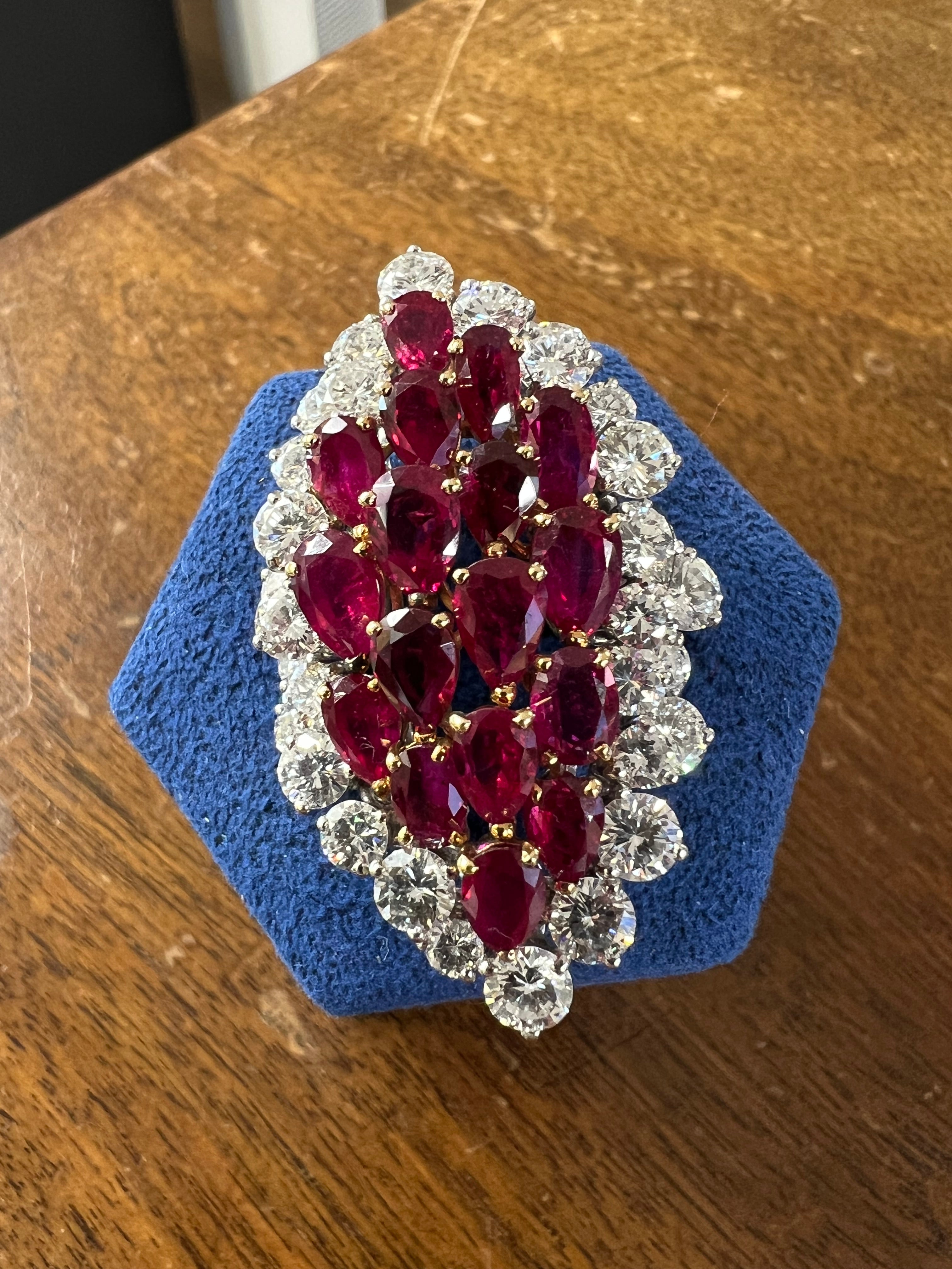 Set with approximately 10 carats Burma rubies not treated and 6.5 carats diamonds.