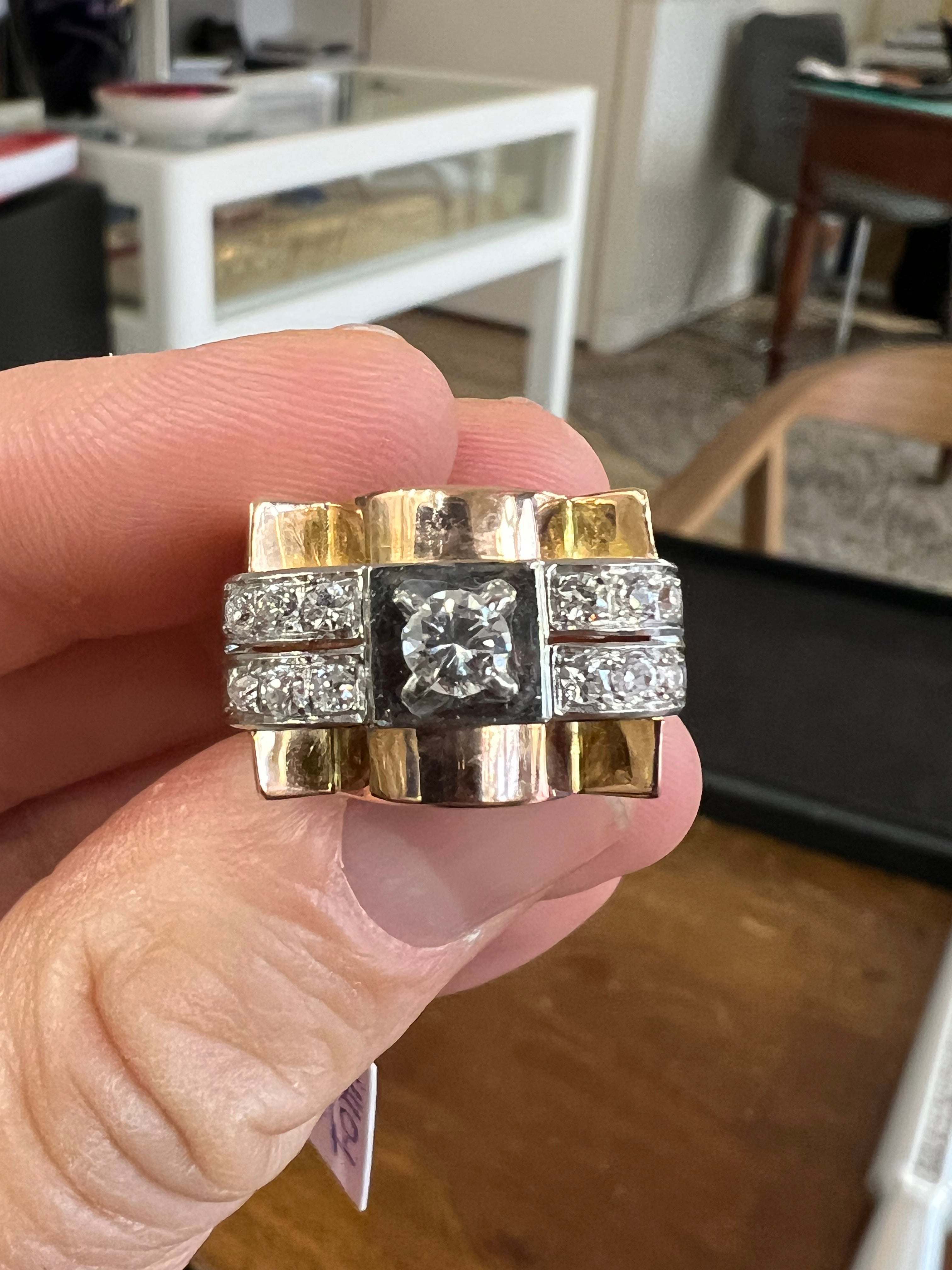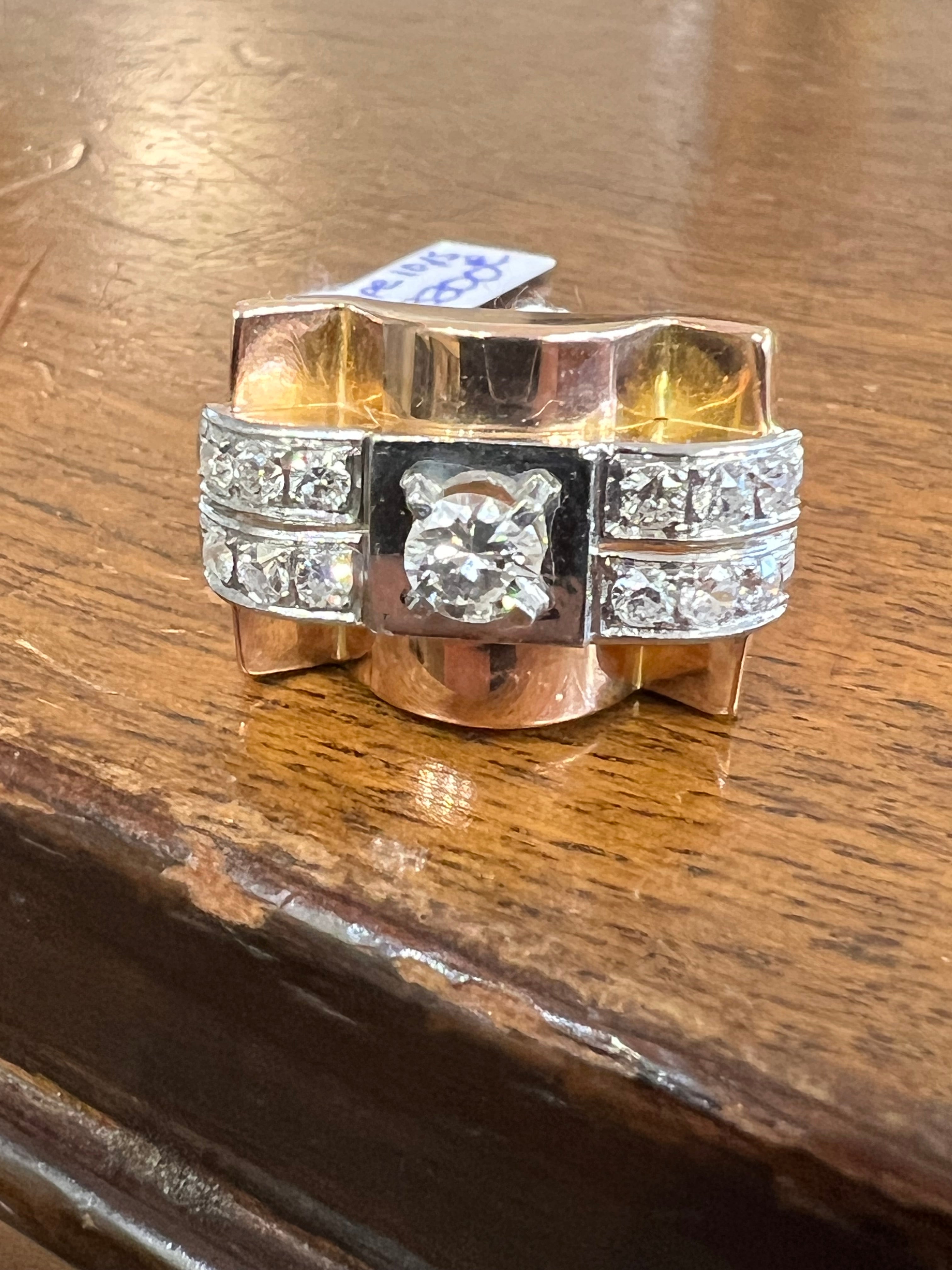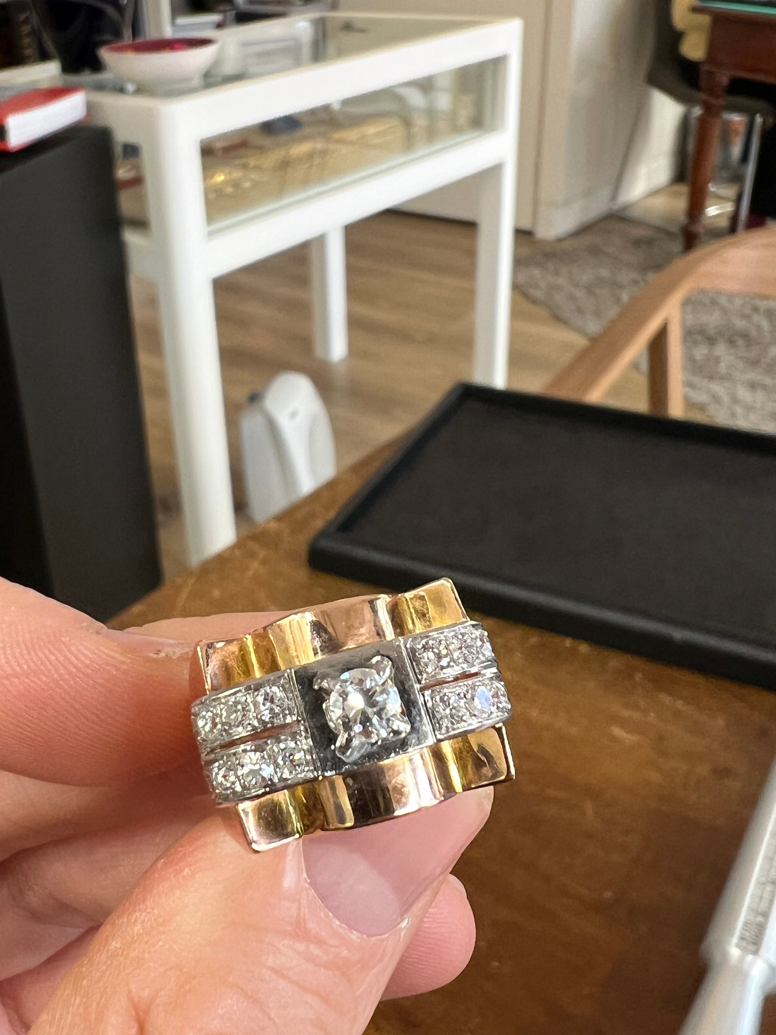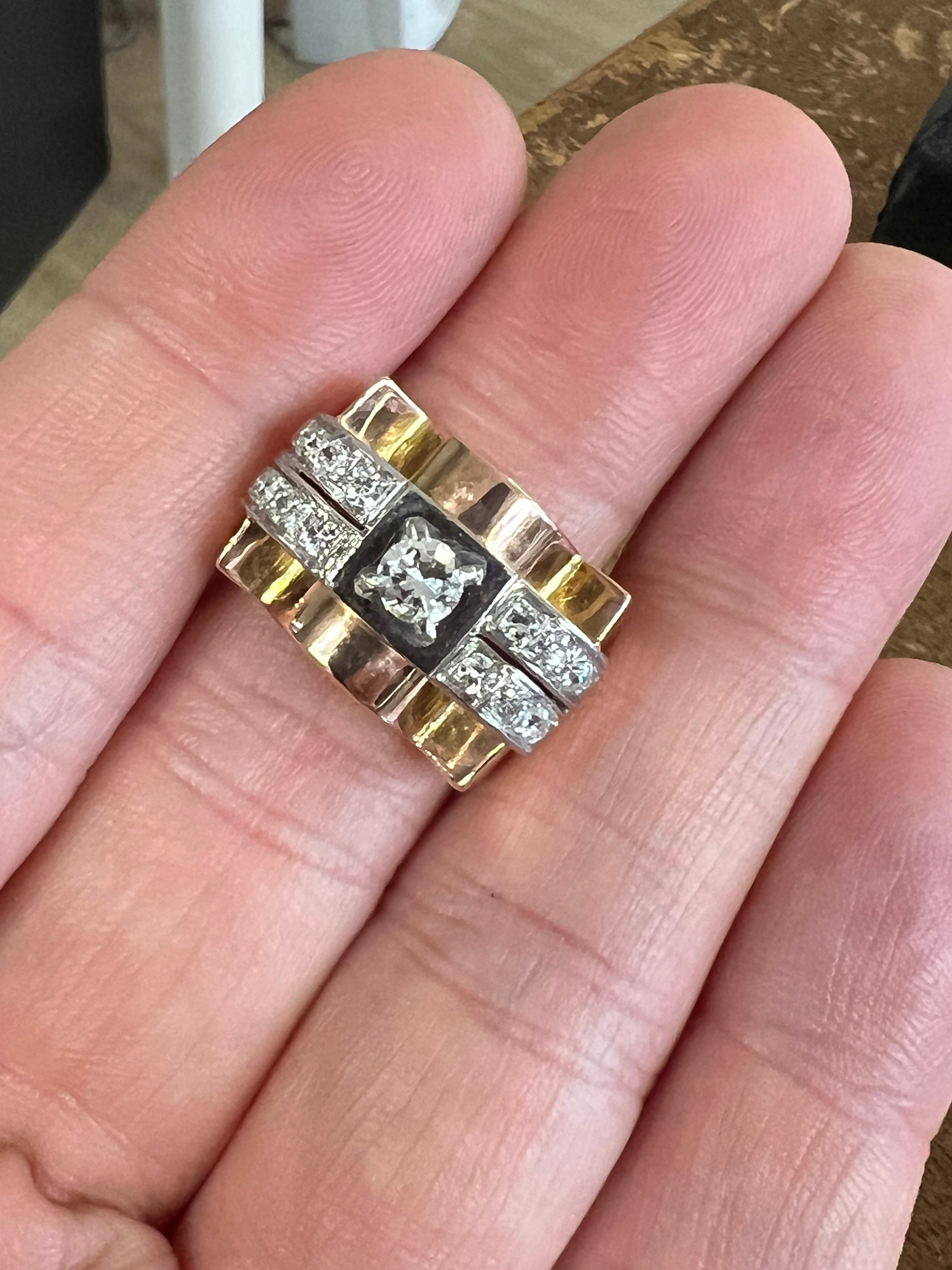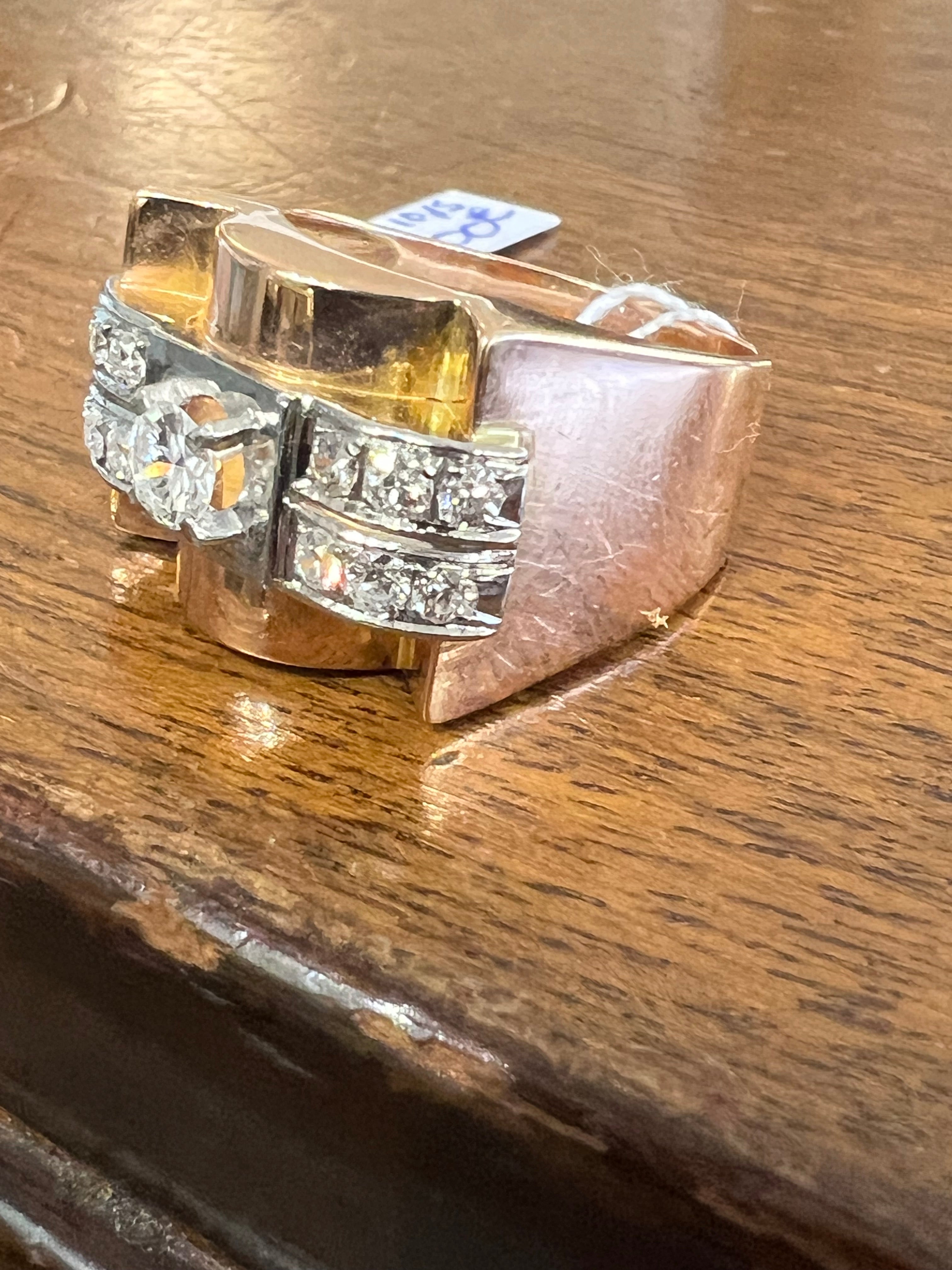 French Vintage Tank Ring in Gold and Diamonds