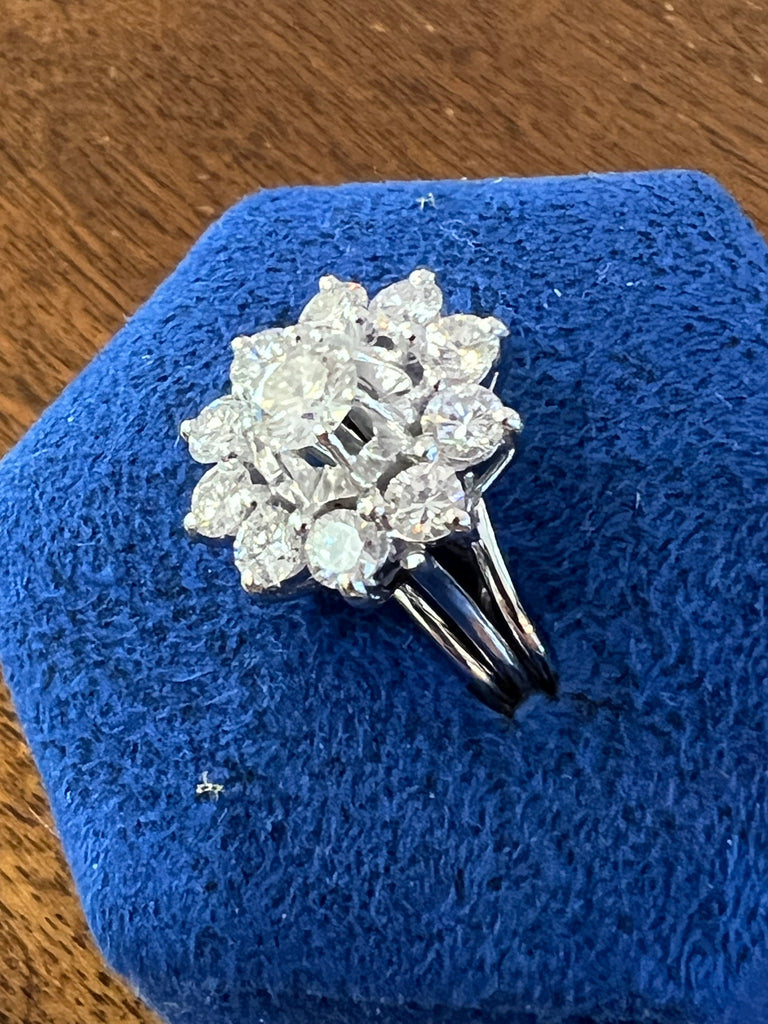 A lovely vintage ring, made in France circa 1960. Made in white gold and platinum, set with approximately 1.50 carats diamonds. The diamonds are very white in color and have a good clarity.