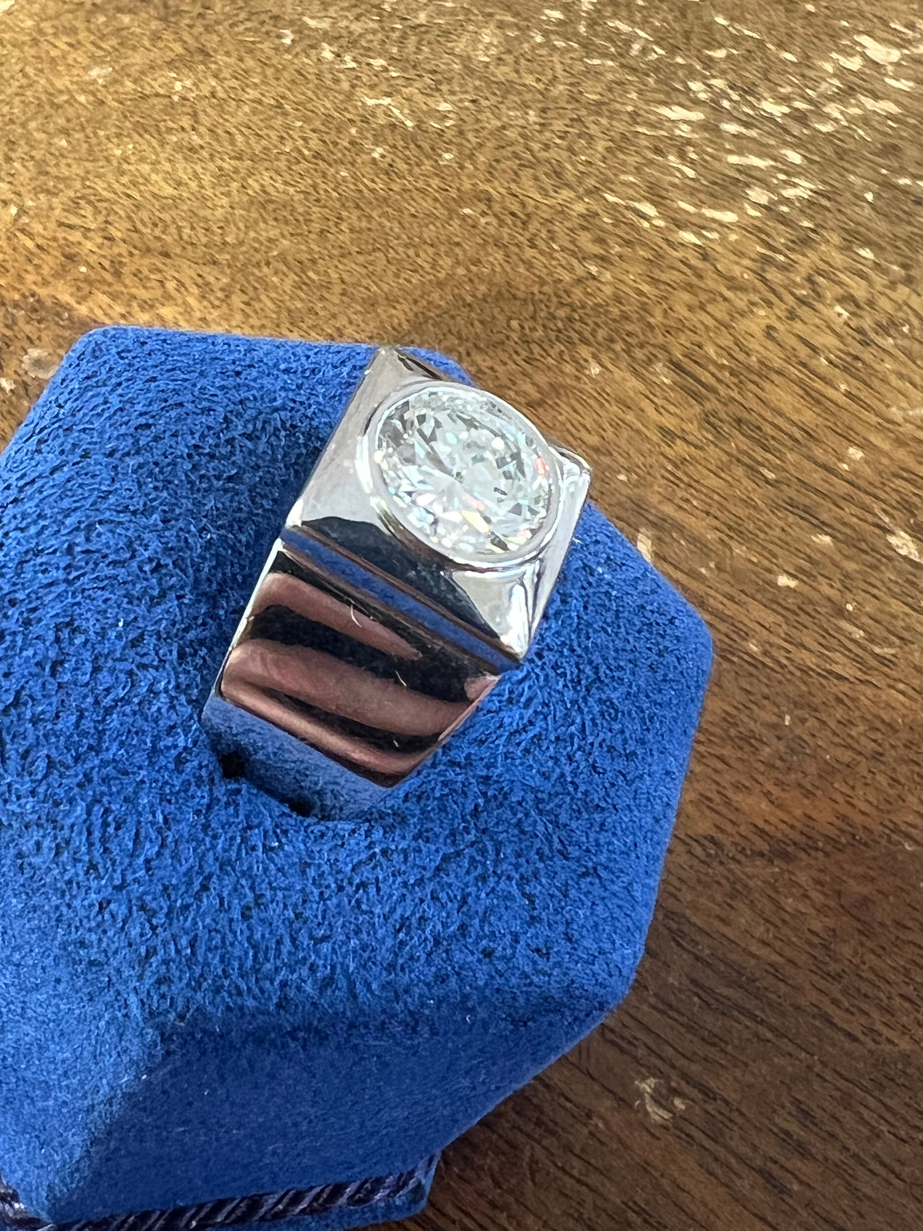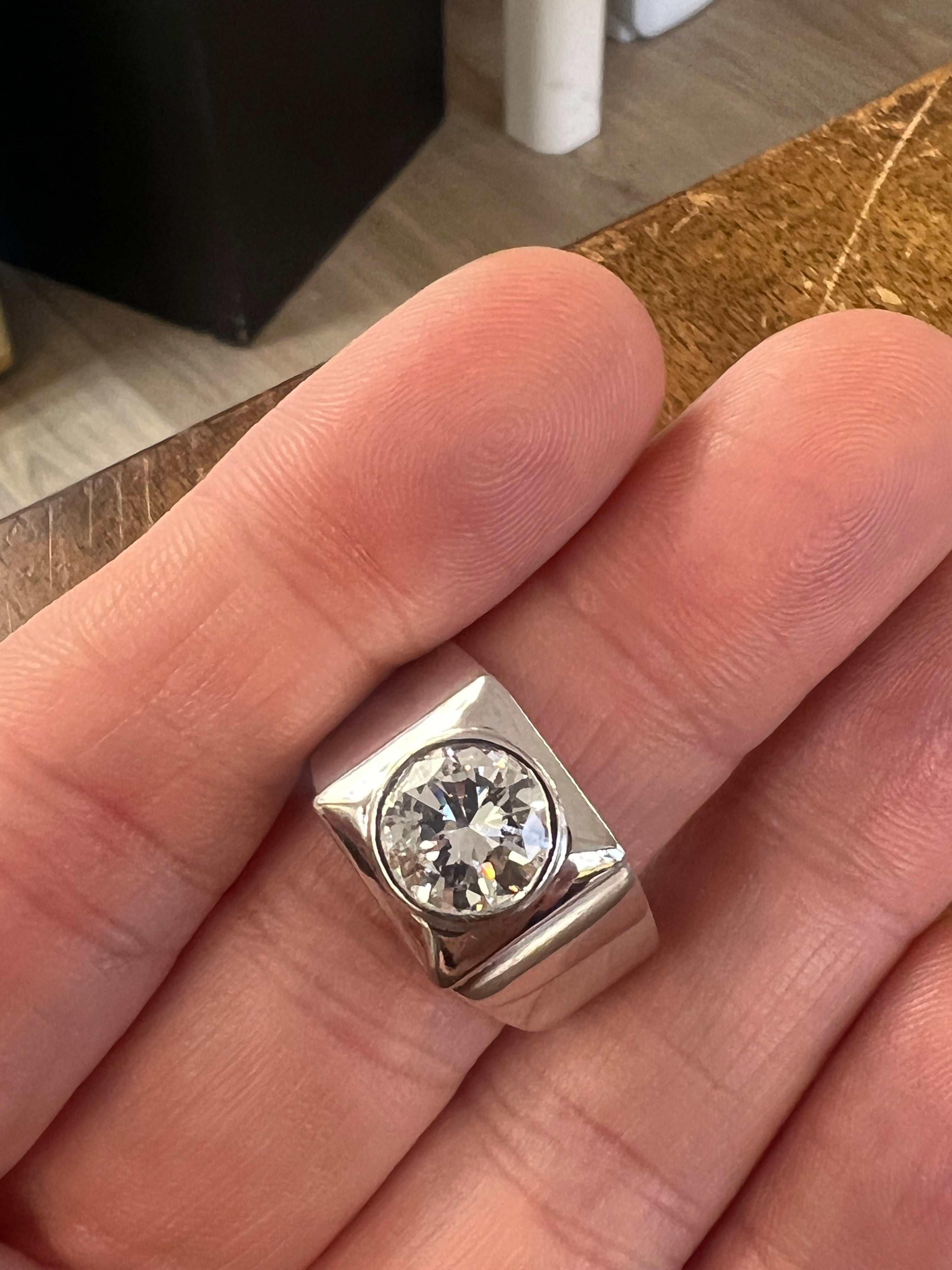 Gold and 2.24 Carats Diamond Vintage Chevalière Ring