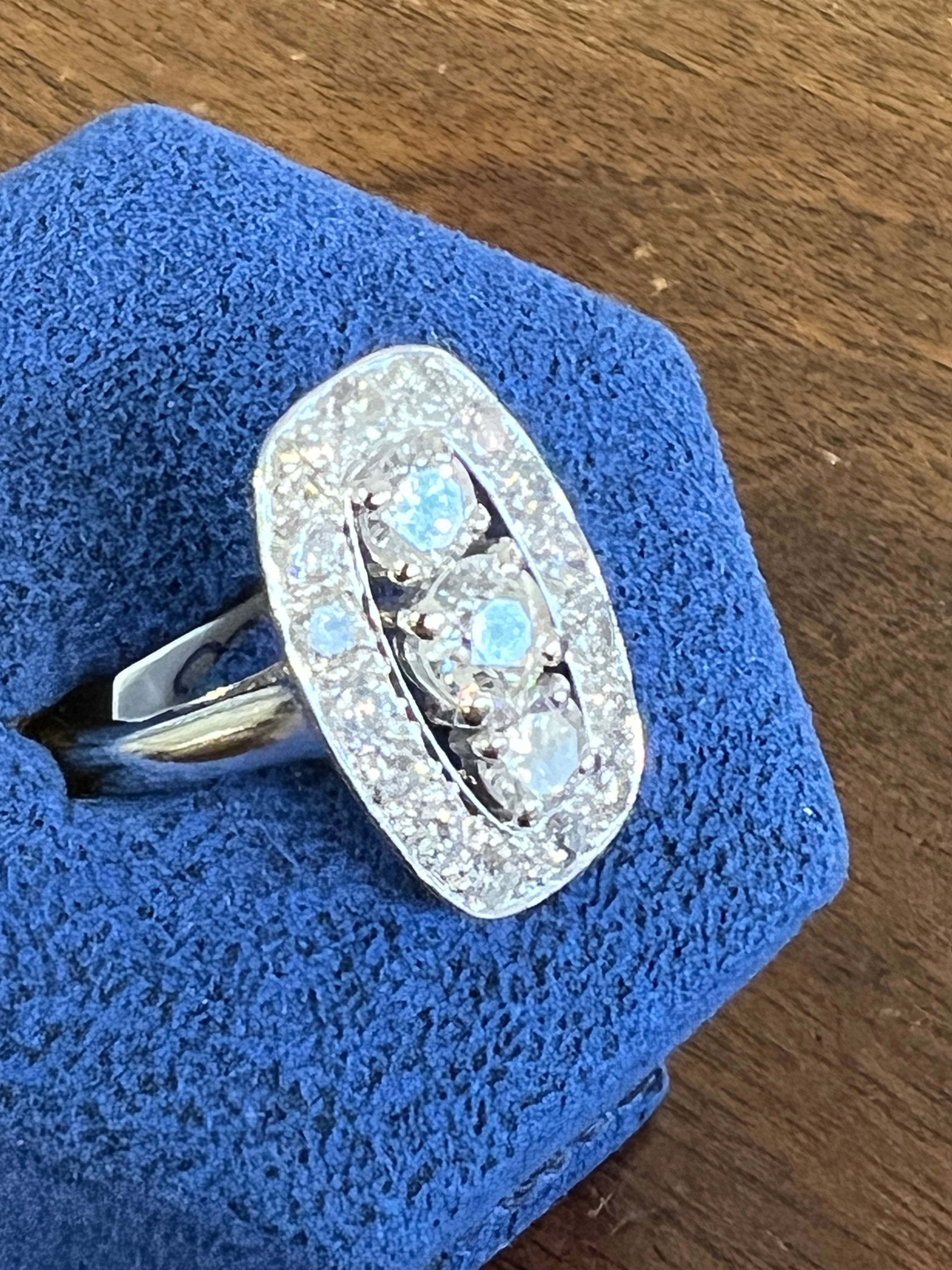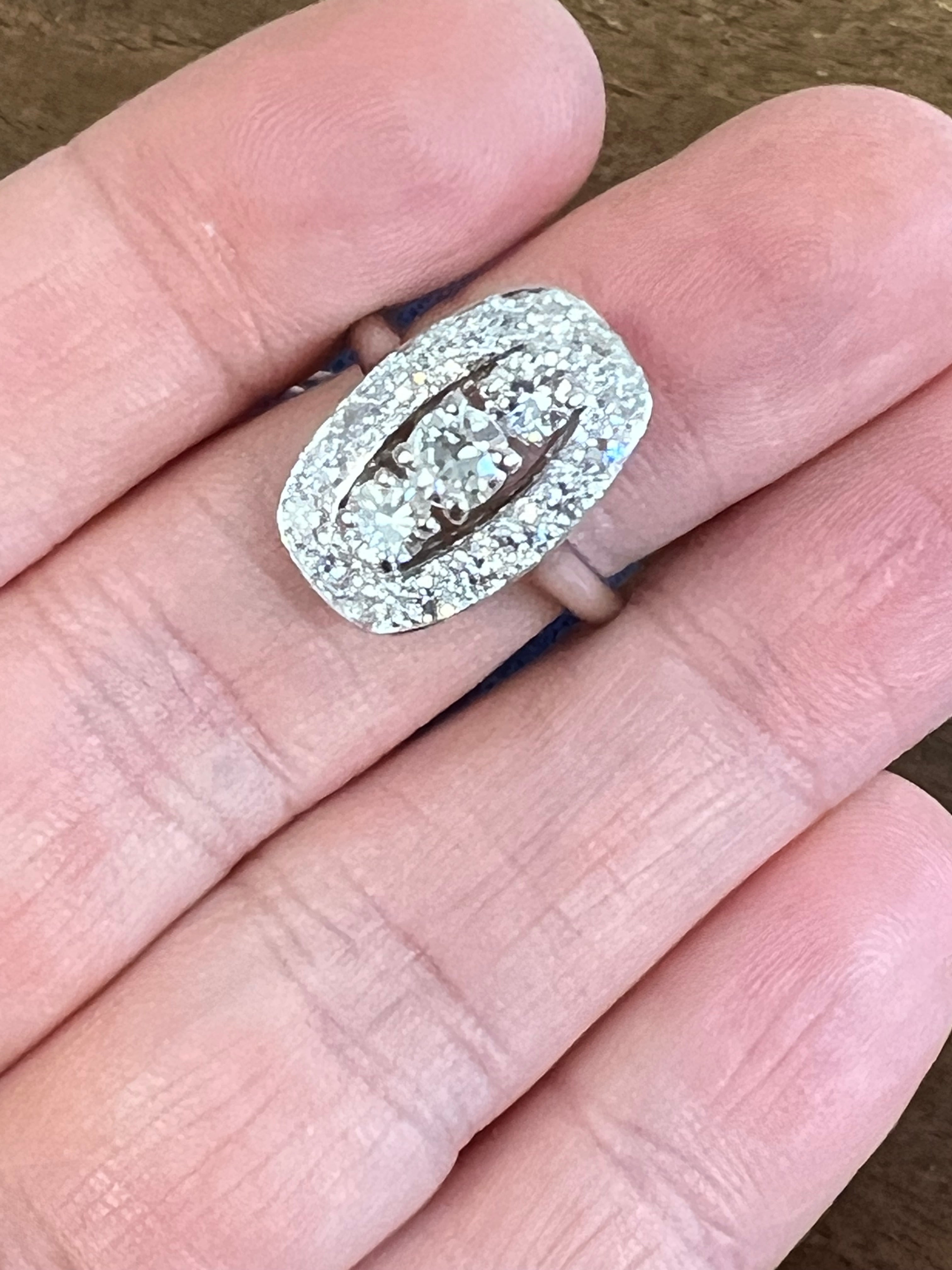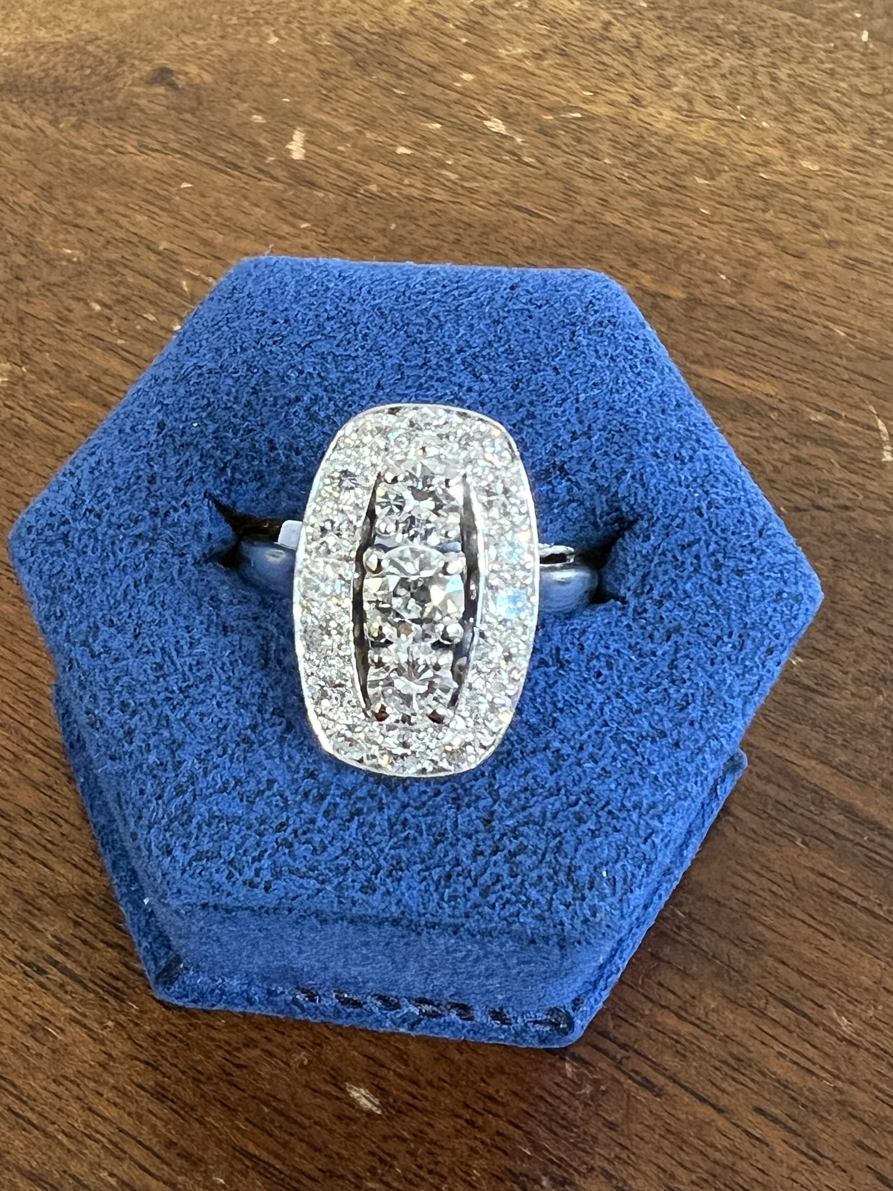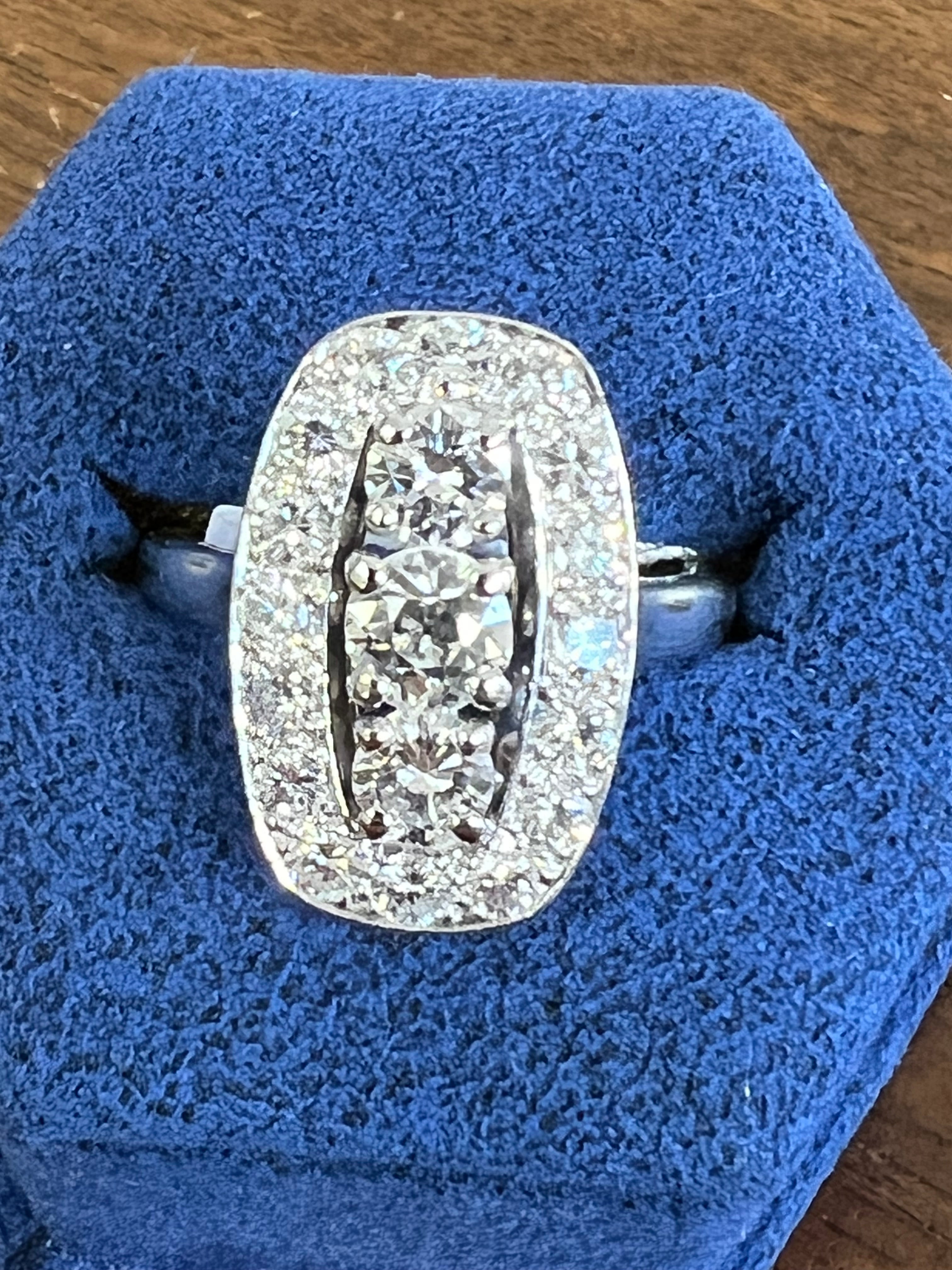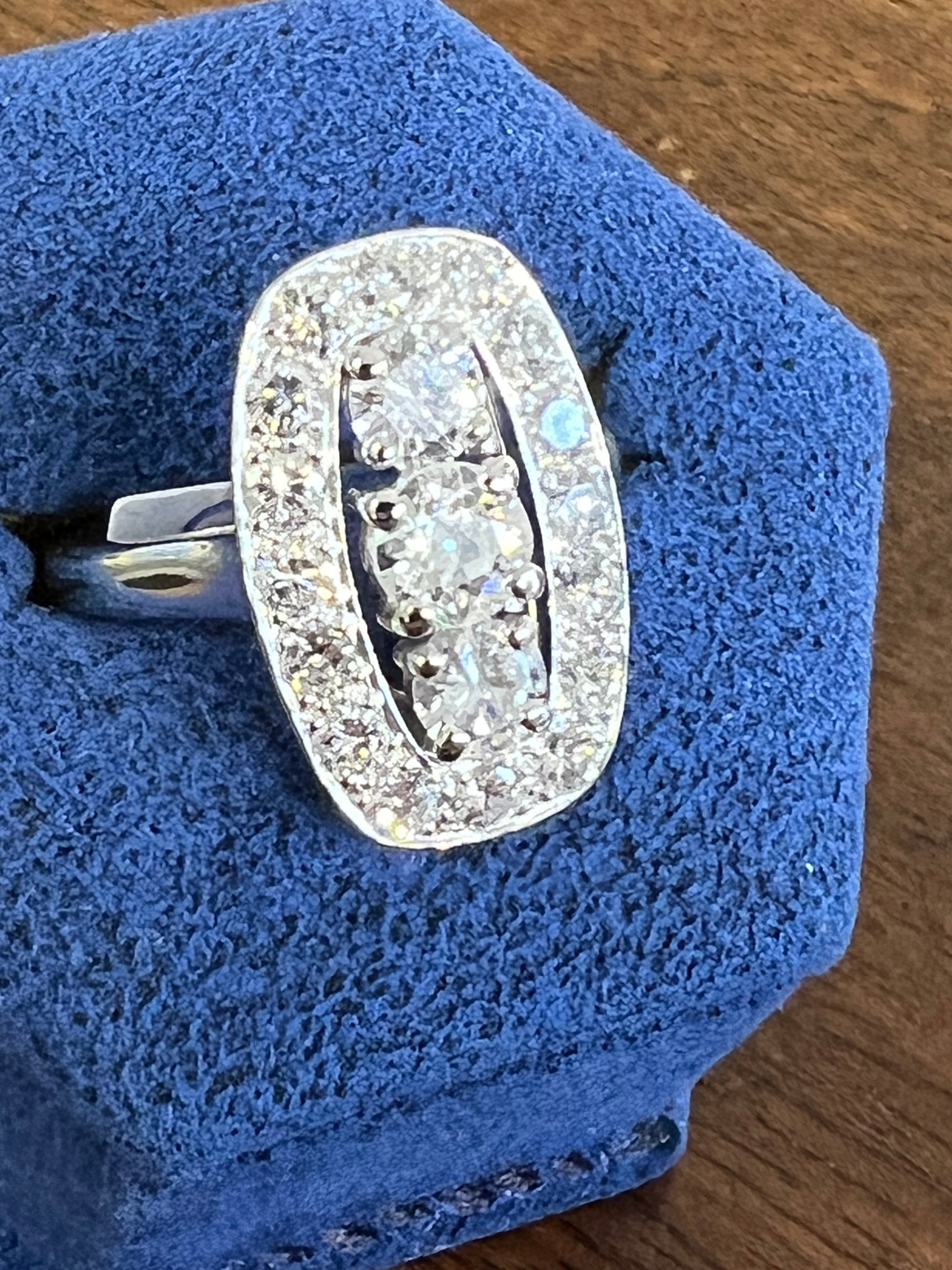 A lovely vintage ring, made in France circa 1960. Made in white gold 18k, set with approximately 1.80 carats diamonds of high quality.