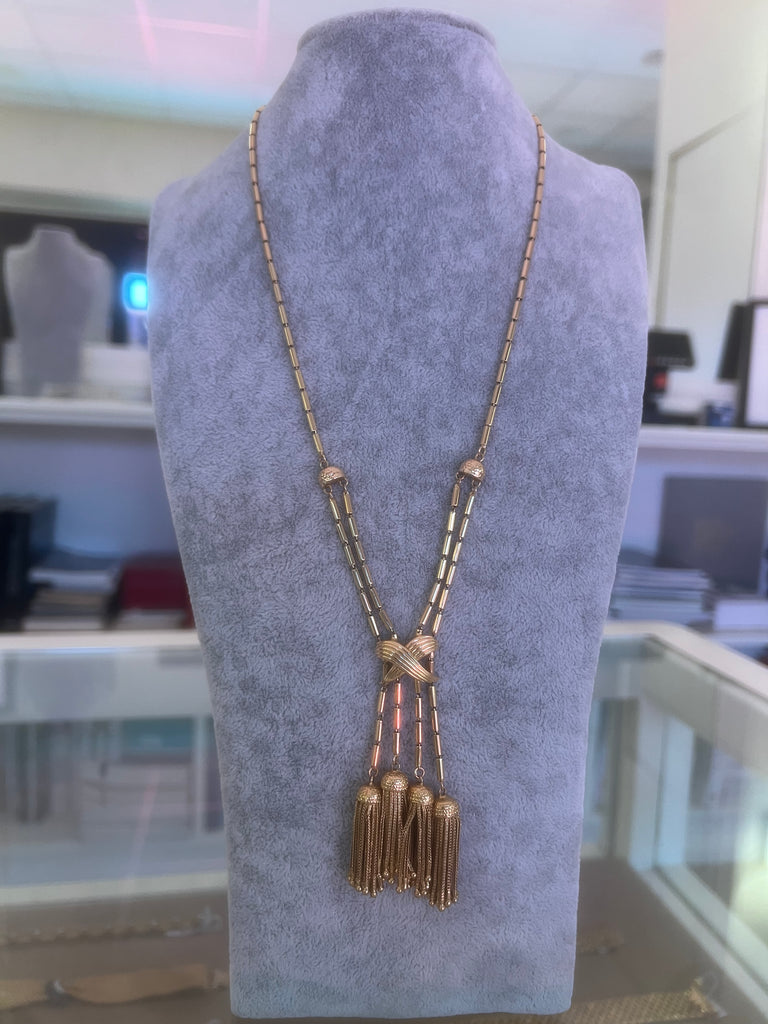 Gold and Diamonds 1950’s French Vintage Tassels Necklace