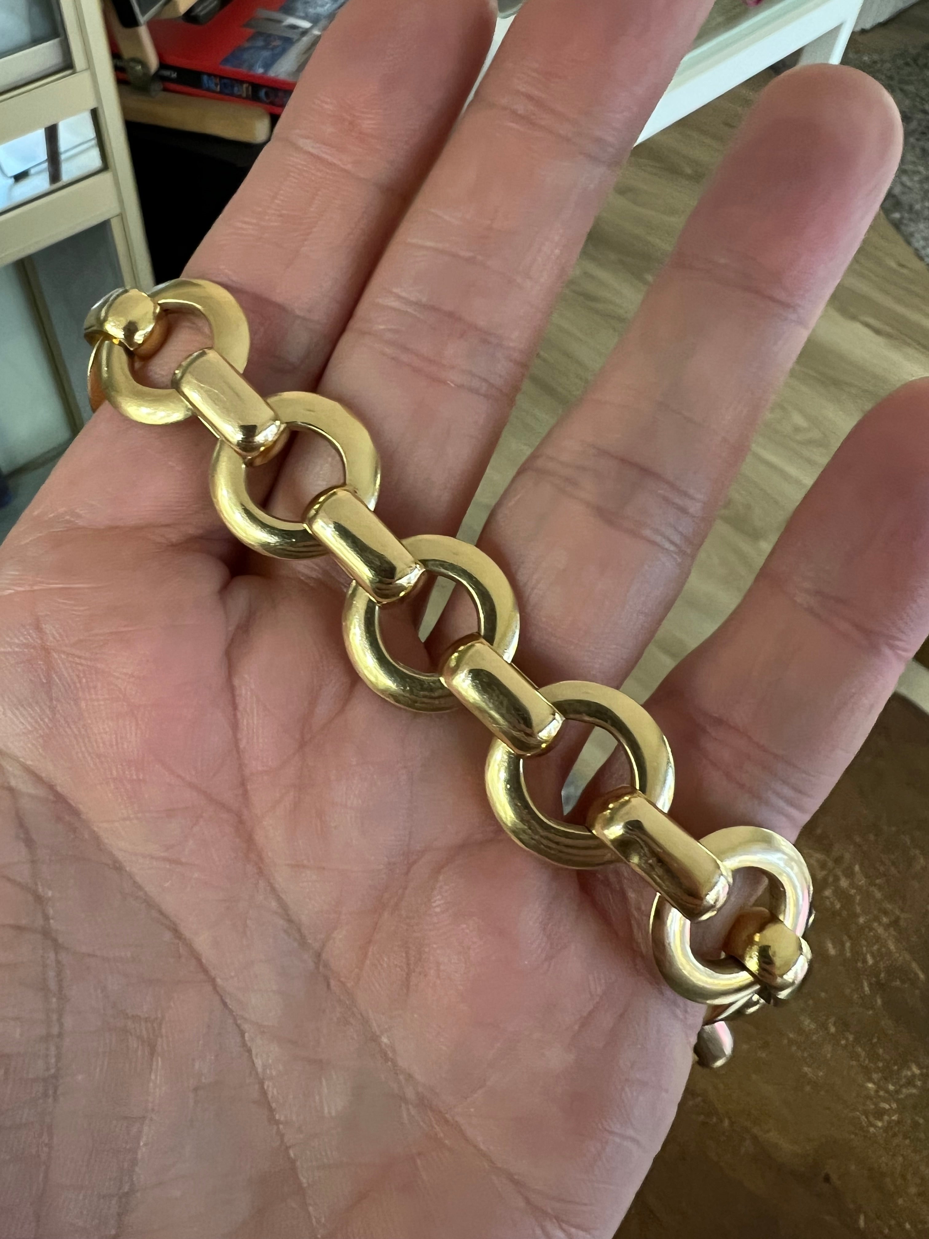 A lovely vintage bracelet, made circa 1970. Made in yellow gold 18k, it weights 41.57 grams.