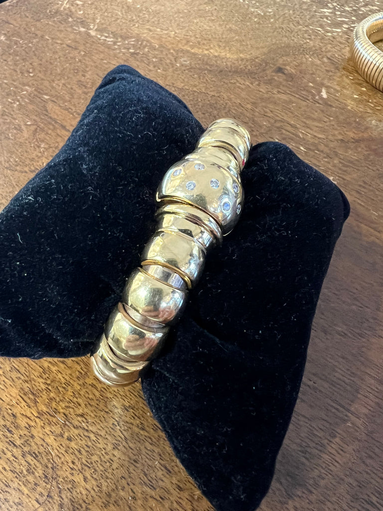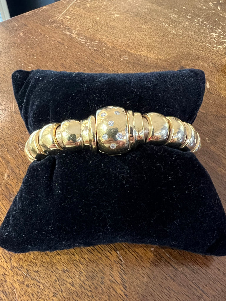 A lovely vintage bracelet, European made circa 1950. Made in yellow gold 18k and set with diamonds.