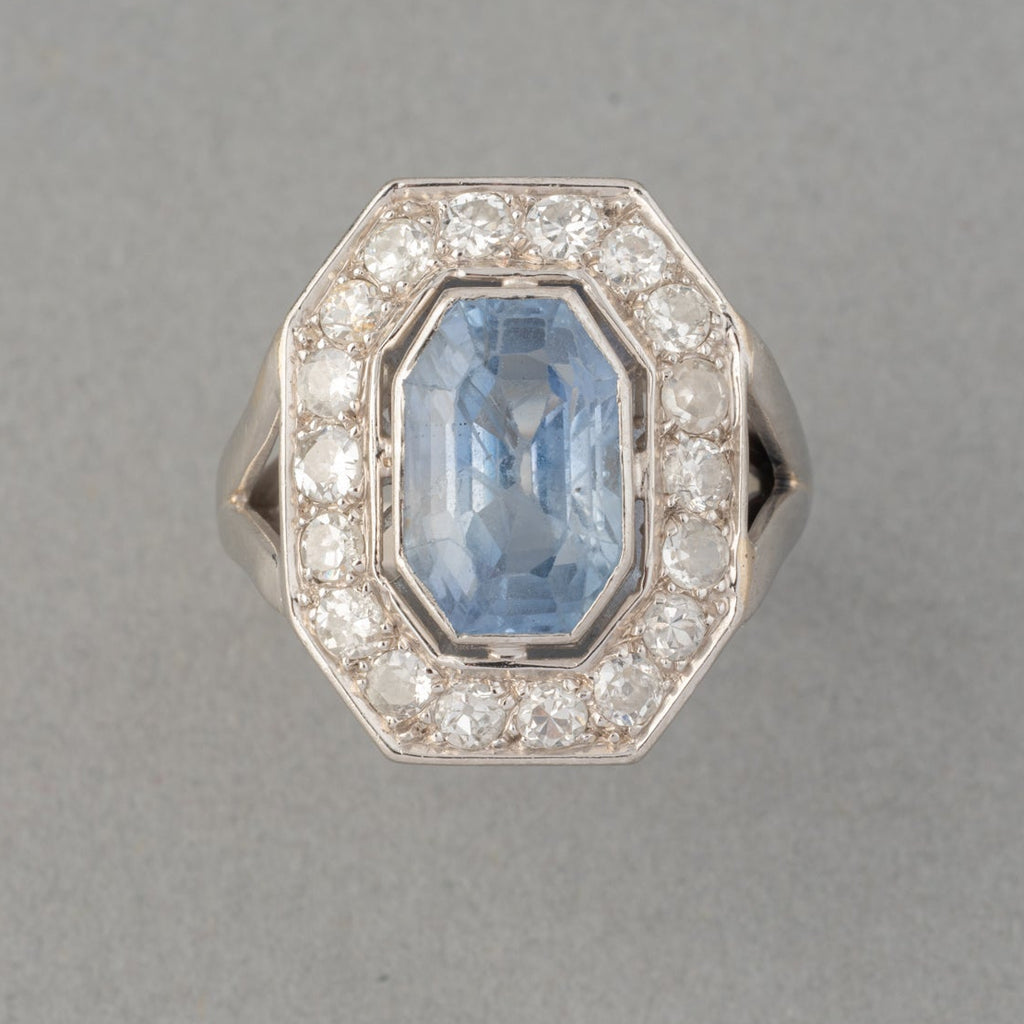 Platinum Diamonds and Sapphire French Art Deco Ring