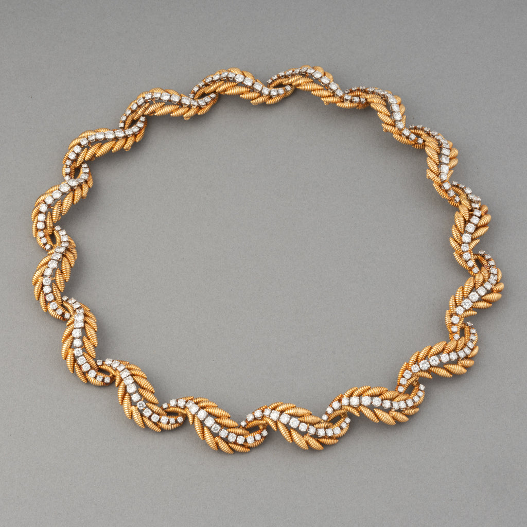 René Frechou Gold and 16 Carats Diamonds 1950’s Necklace