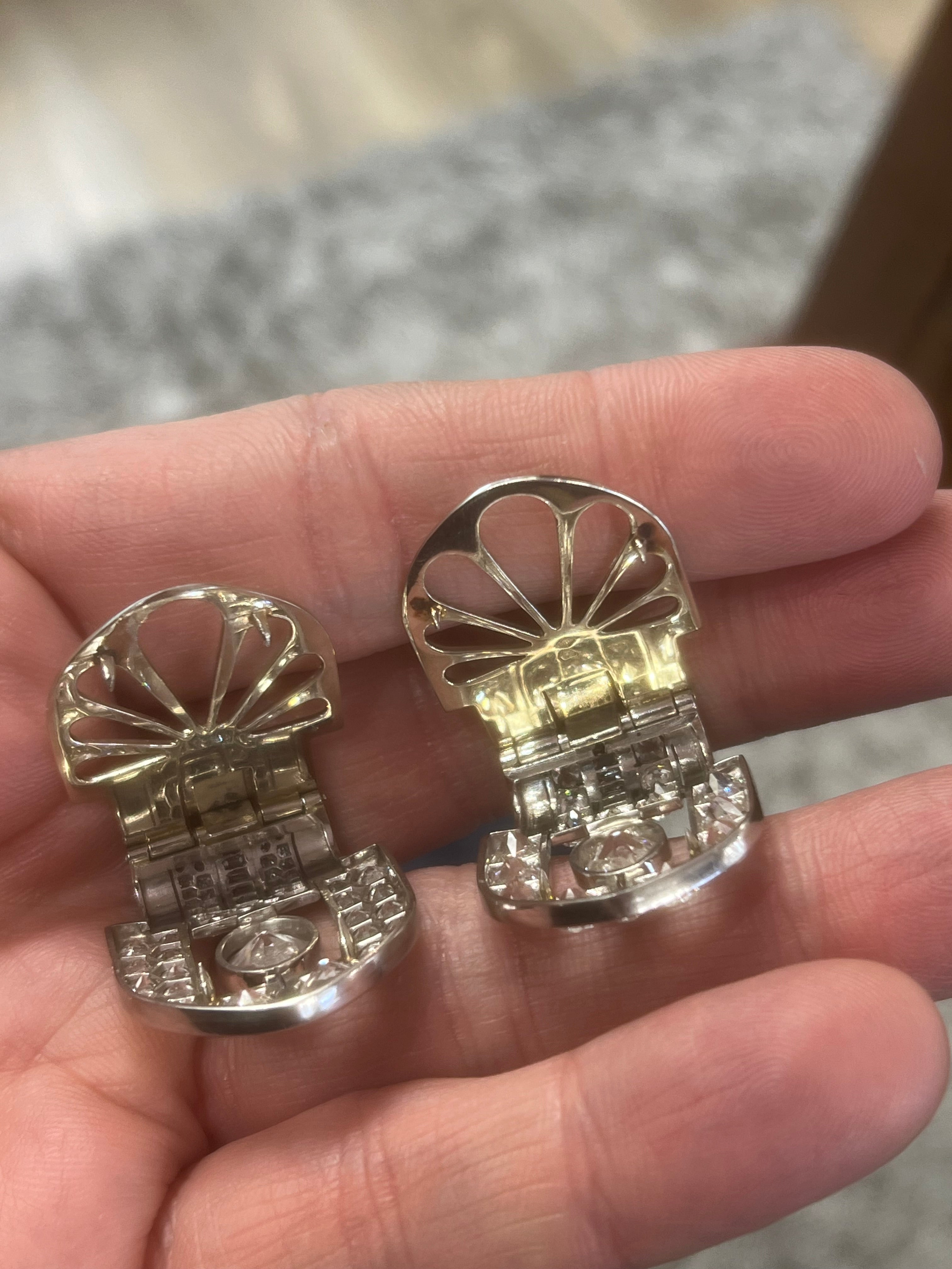 Platinum and 12 Carats Diamonds French Art Deco Clip Brooches