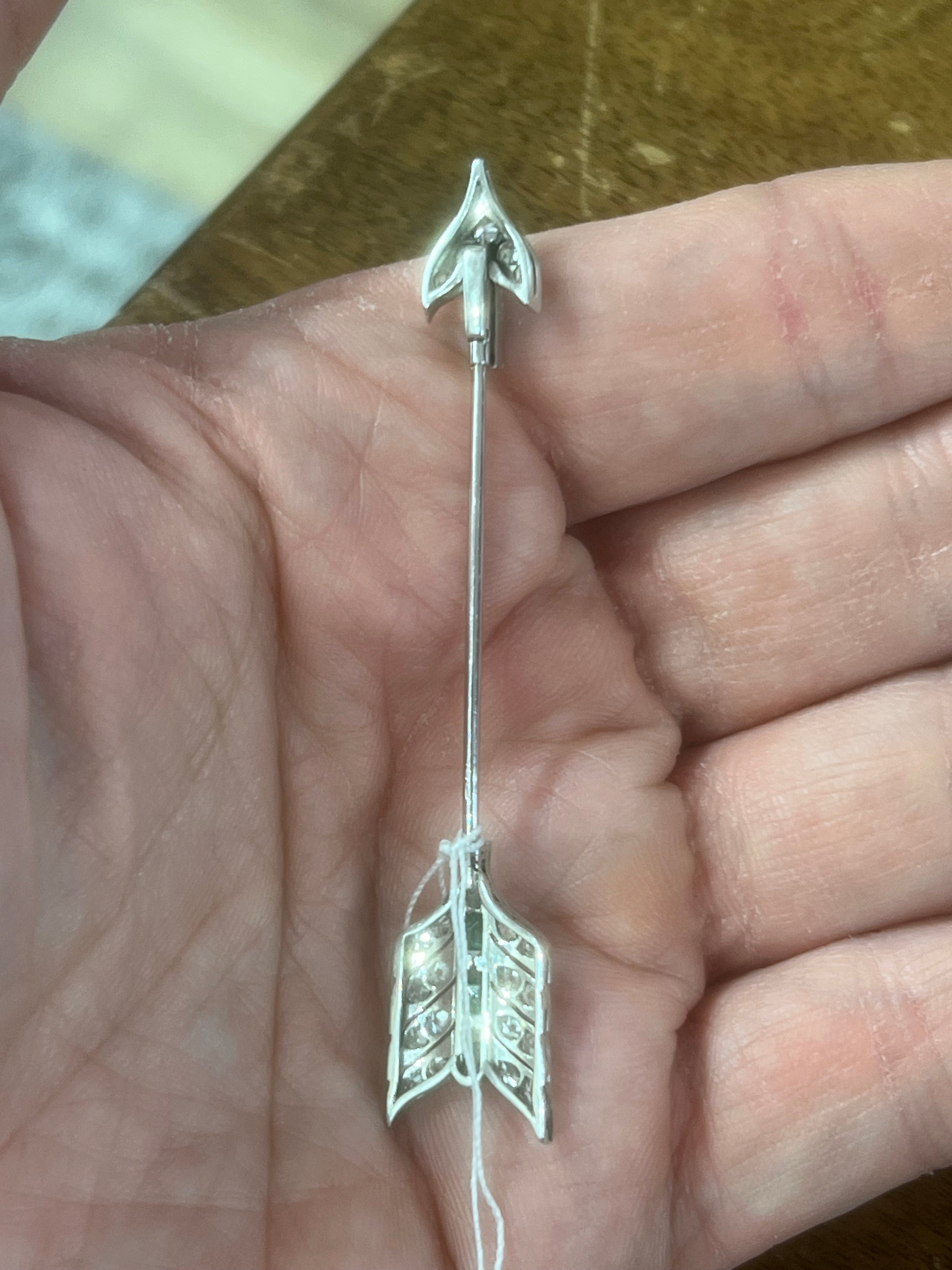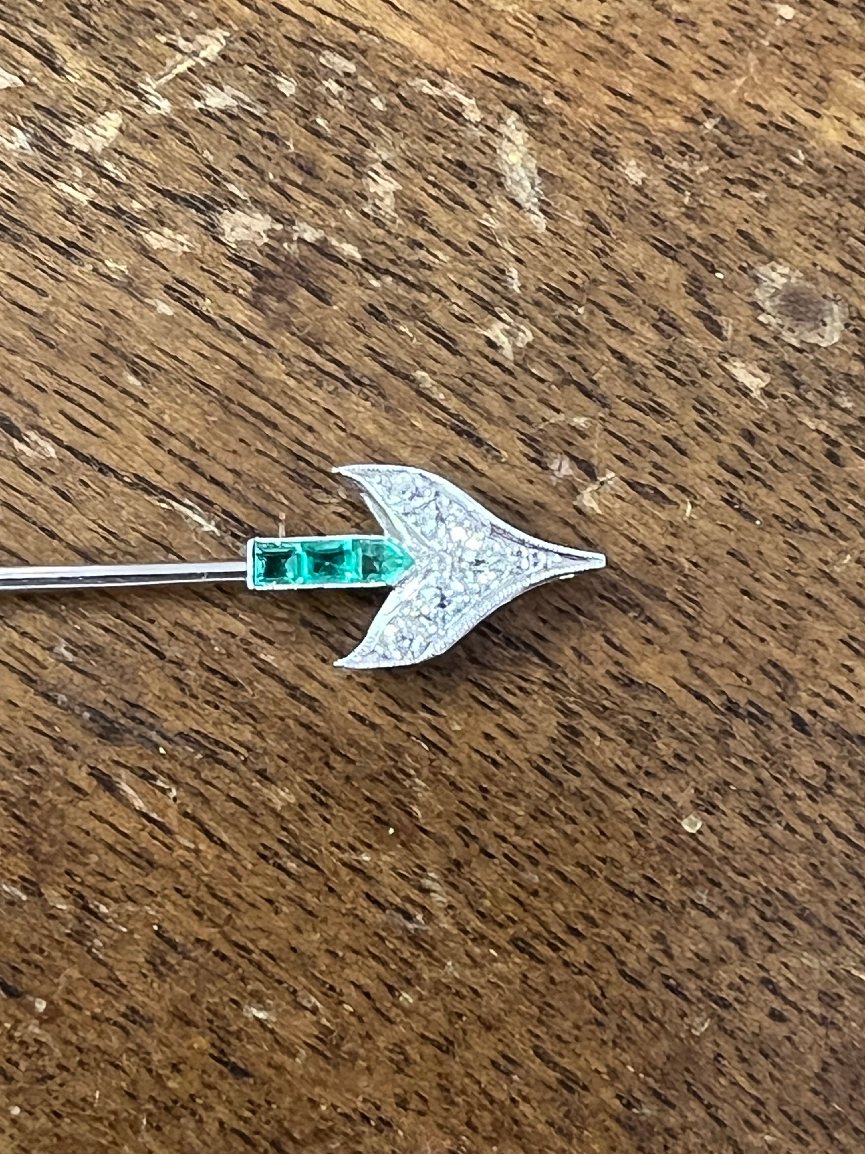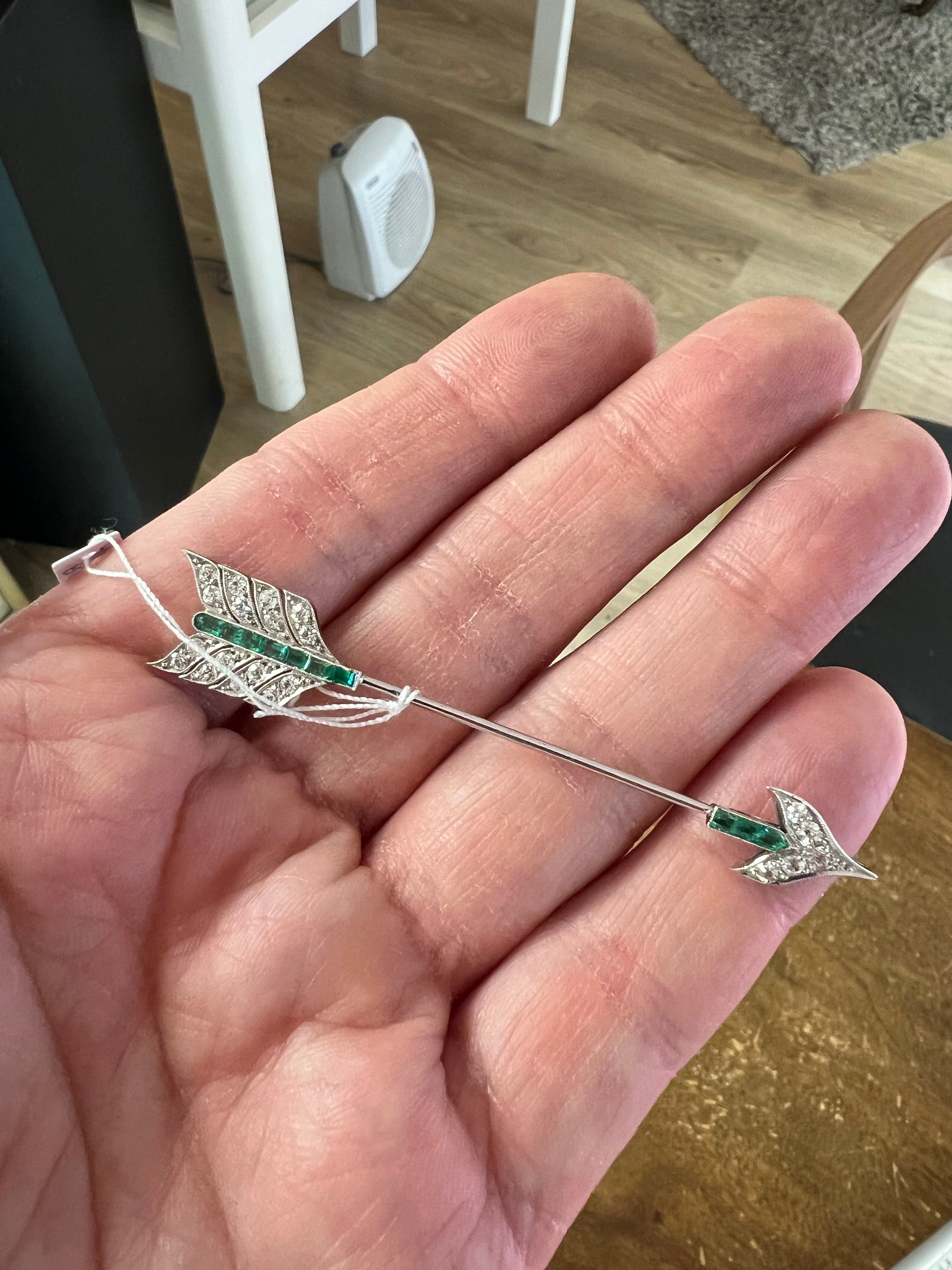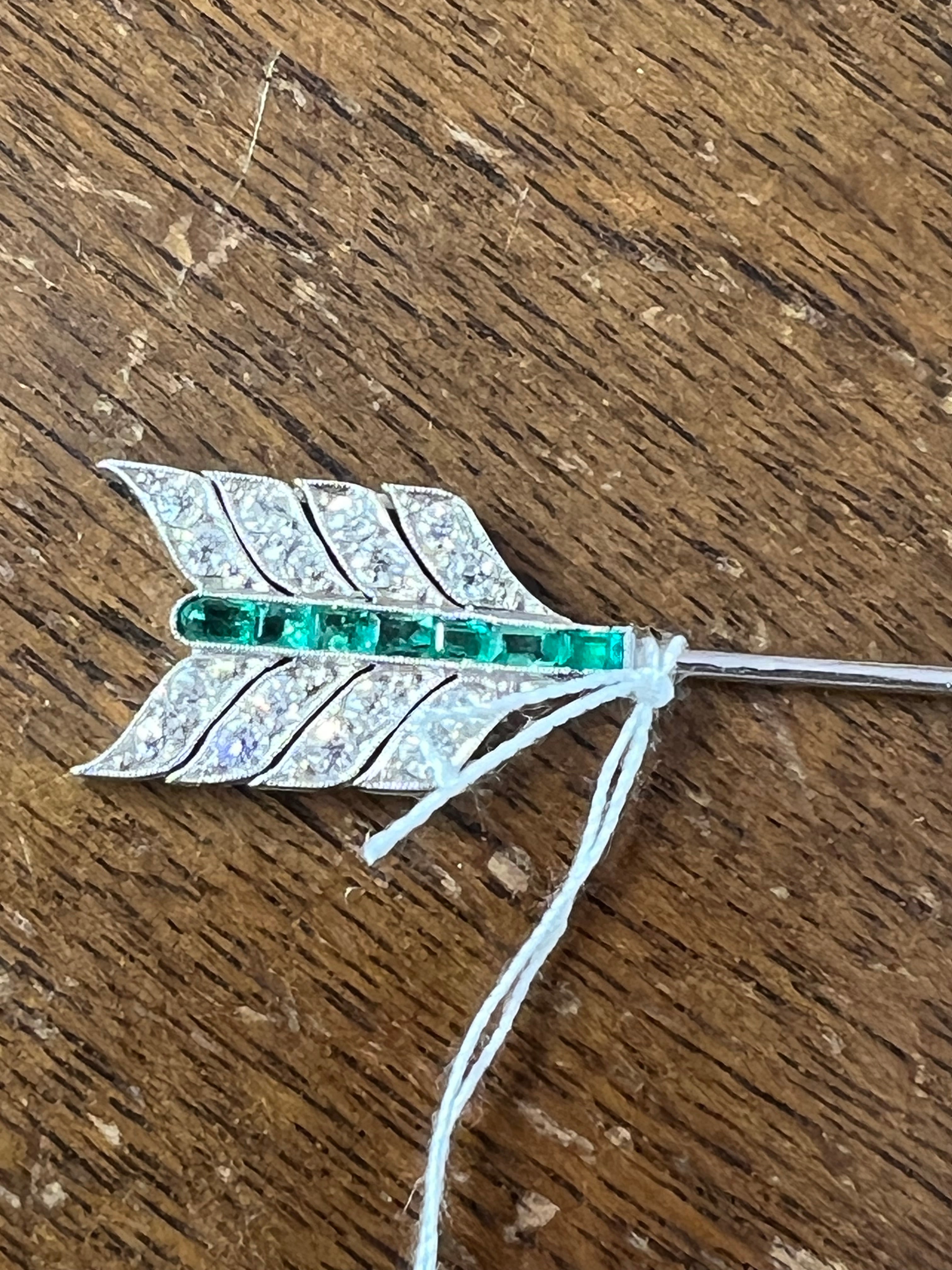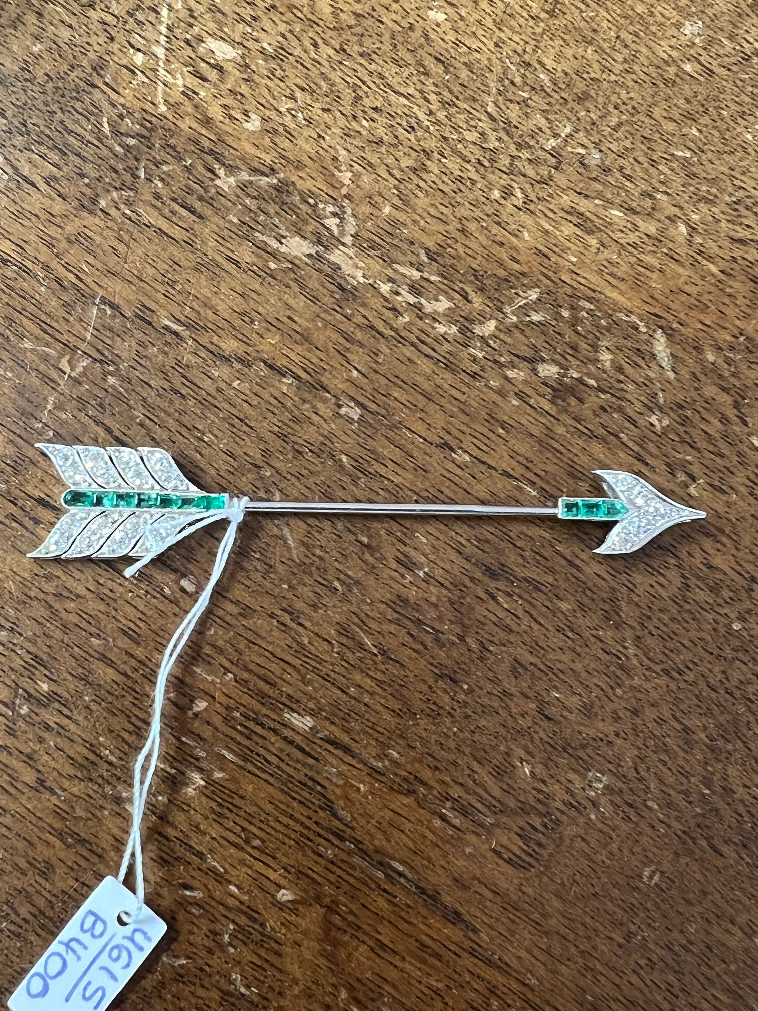 A lovely brooch, made in France circa 1920. Made in platinum, set with diamonds and emeralds.