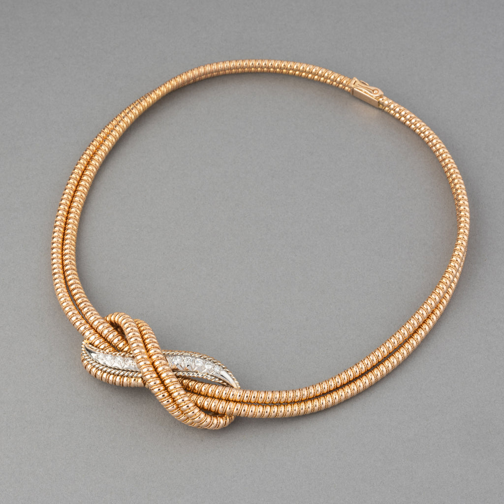An elegant French vintage necklace, made circa 1955. Made in yellow gold 18k and platinum.