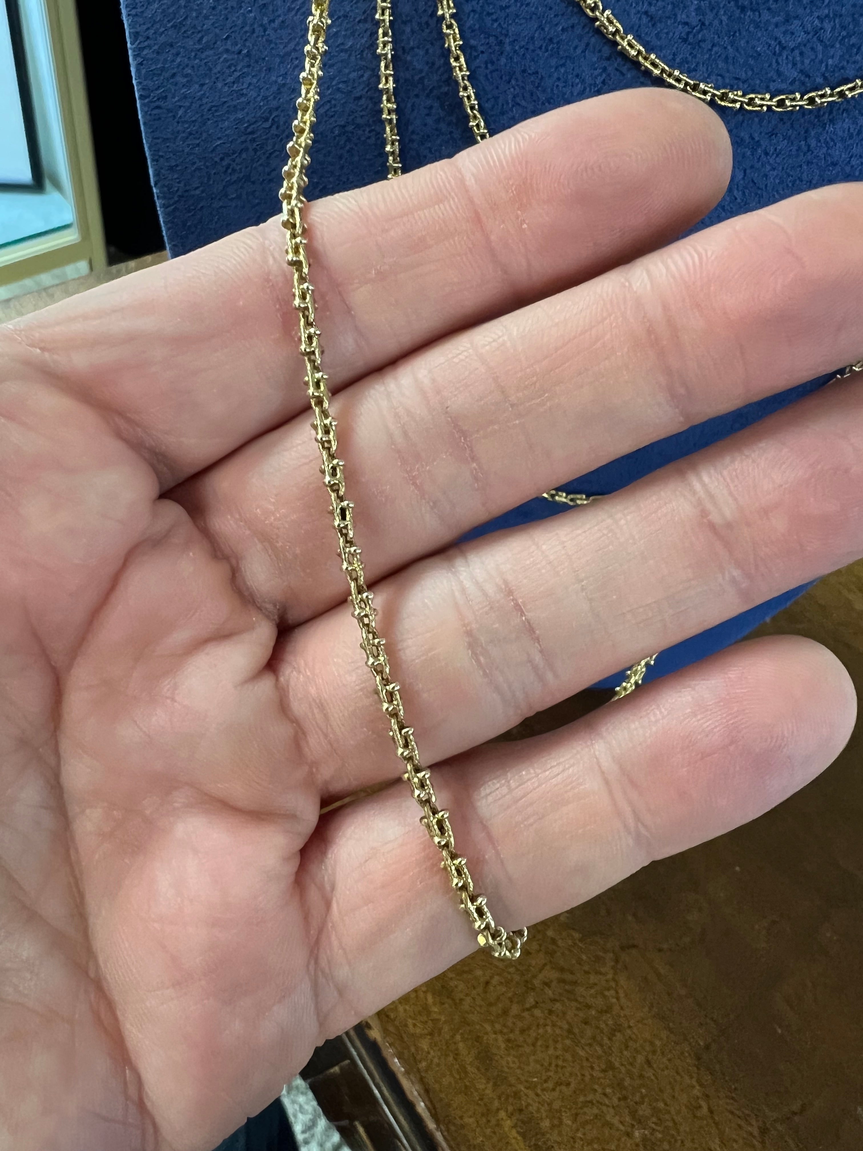 Made in yellow gold 18k, it is very long with a 216 cm length.