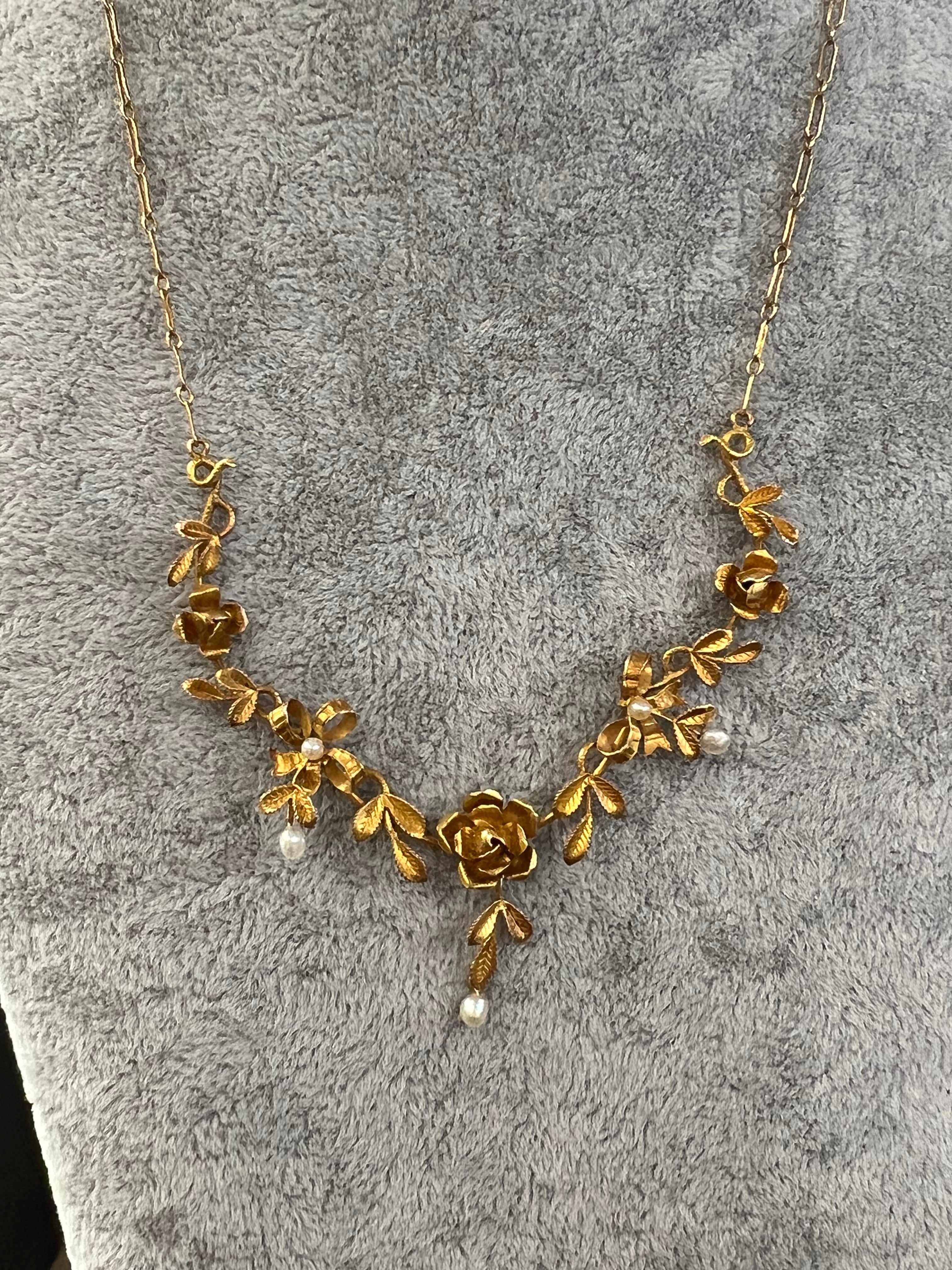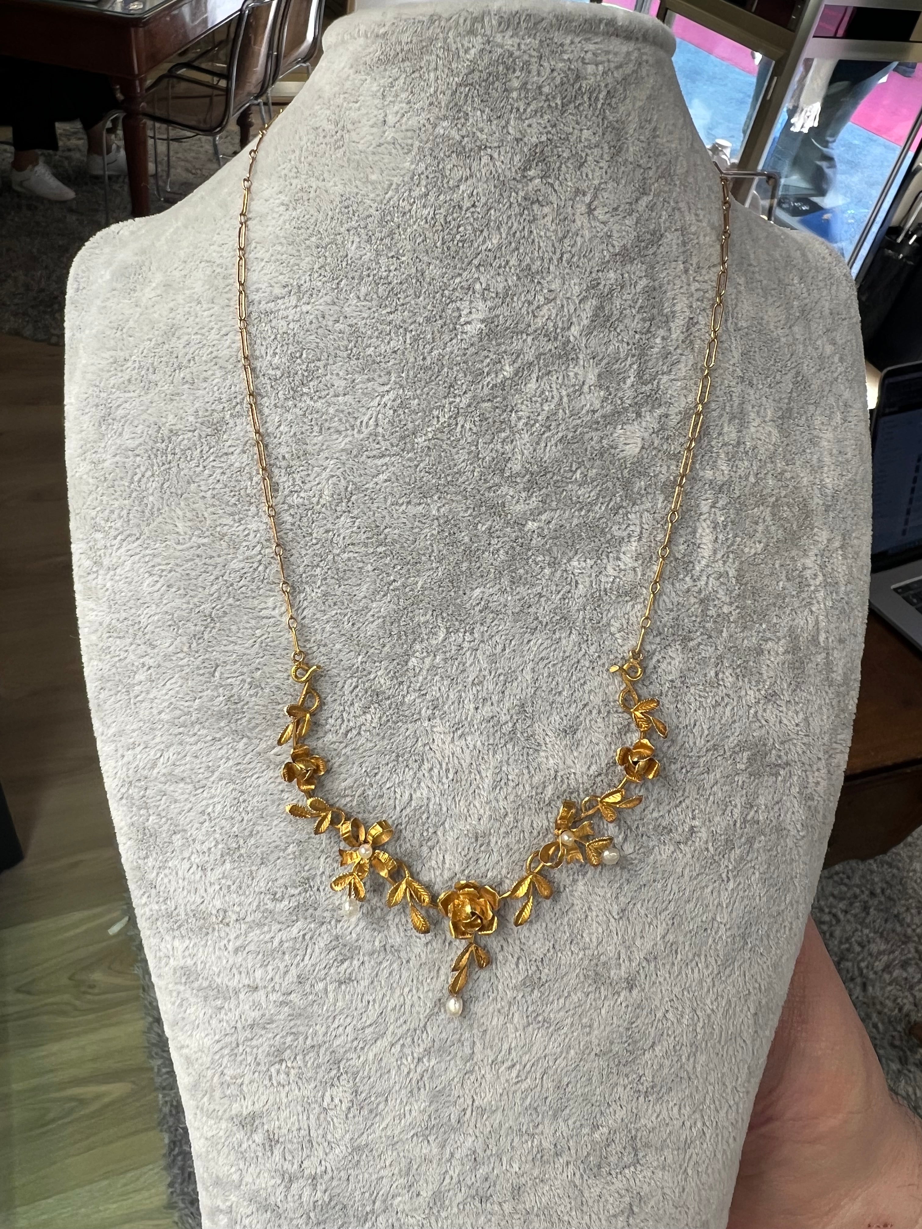 A lovely necklace, made in France circa 1890. Made in yellow gold 18k ans set with pearls.