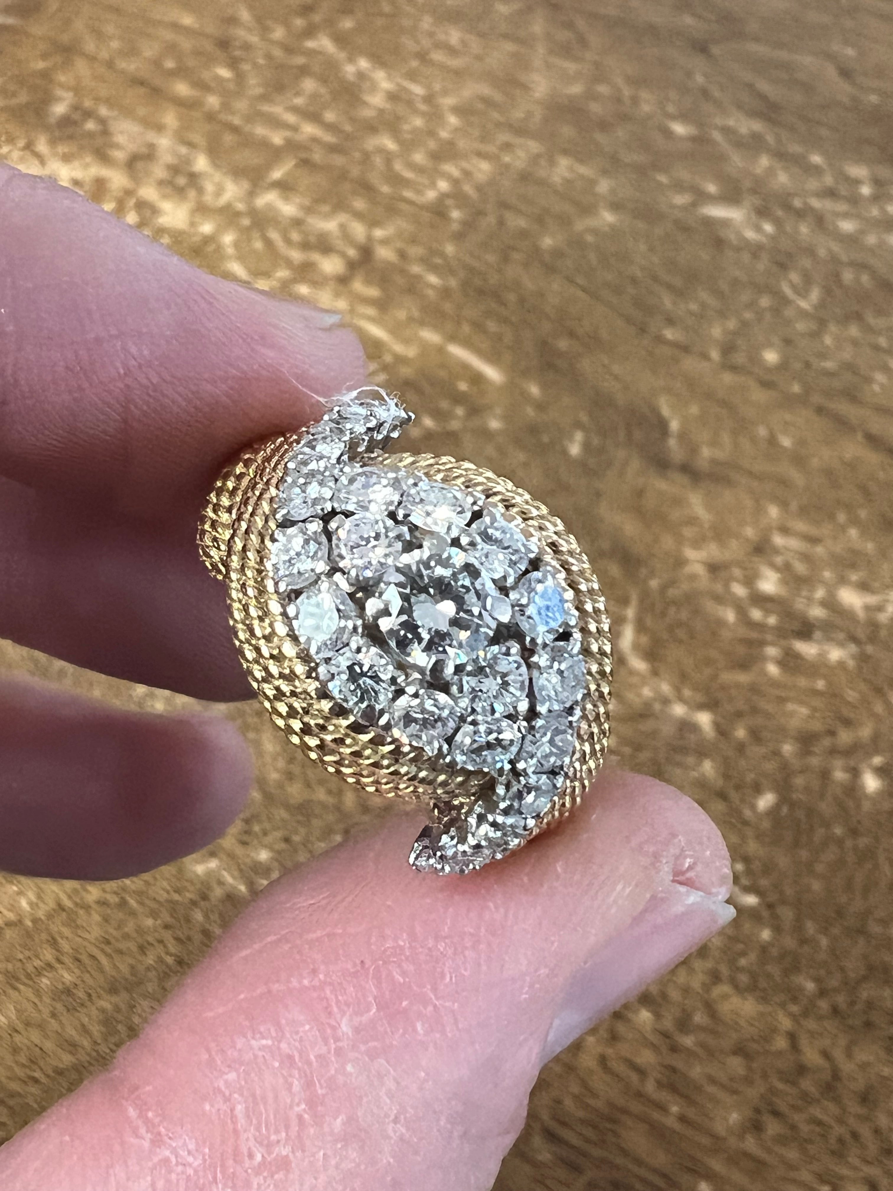 A lovely ring, made in France circa 1950. Made in yellow gold 18k and platinum.
