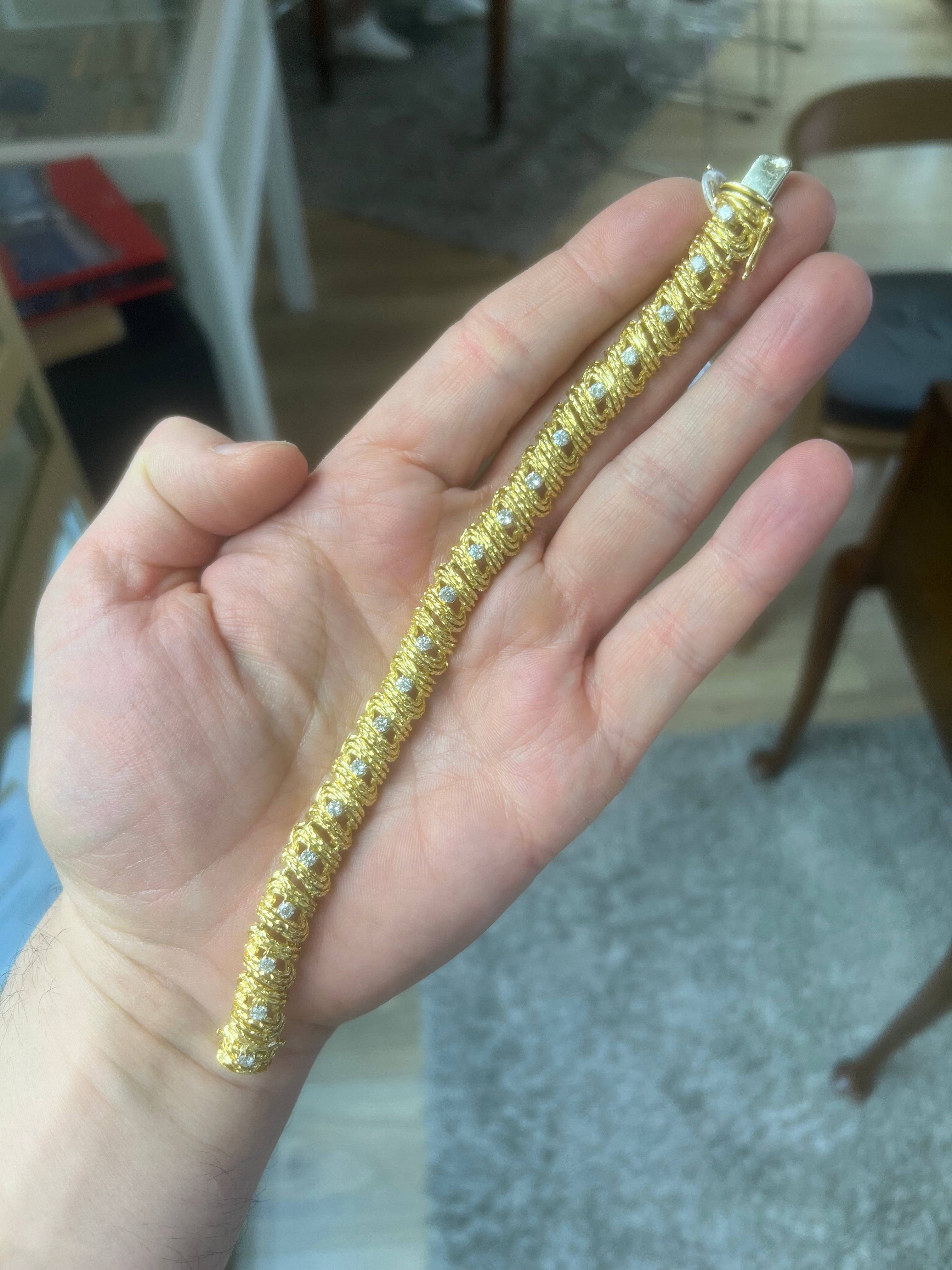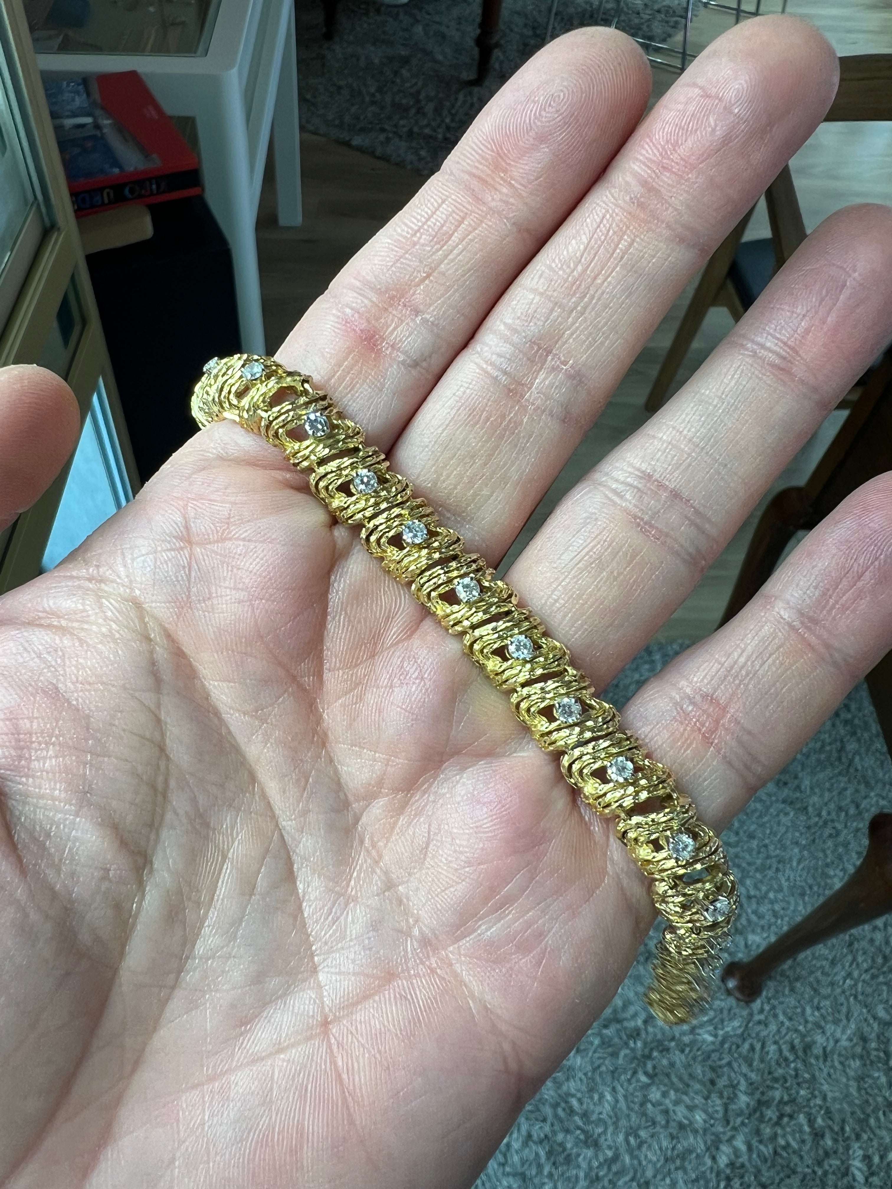A lovely French vintage bracelet, made circa 1960. Made in yellow gold 18k, set with approximately 2 carats of diamonds.