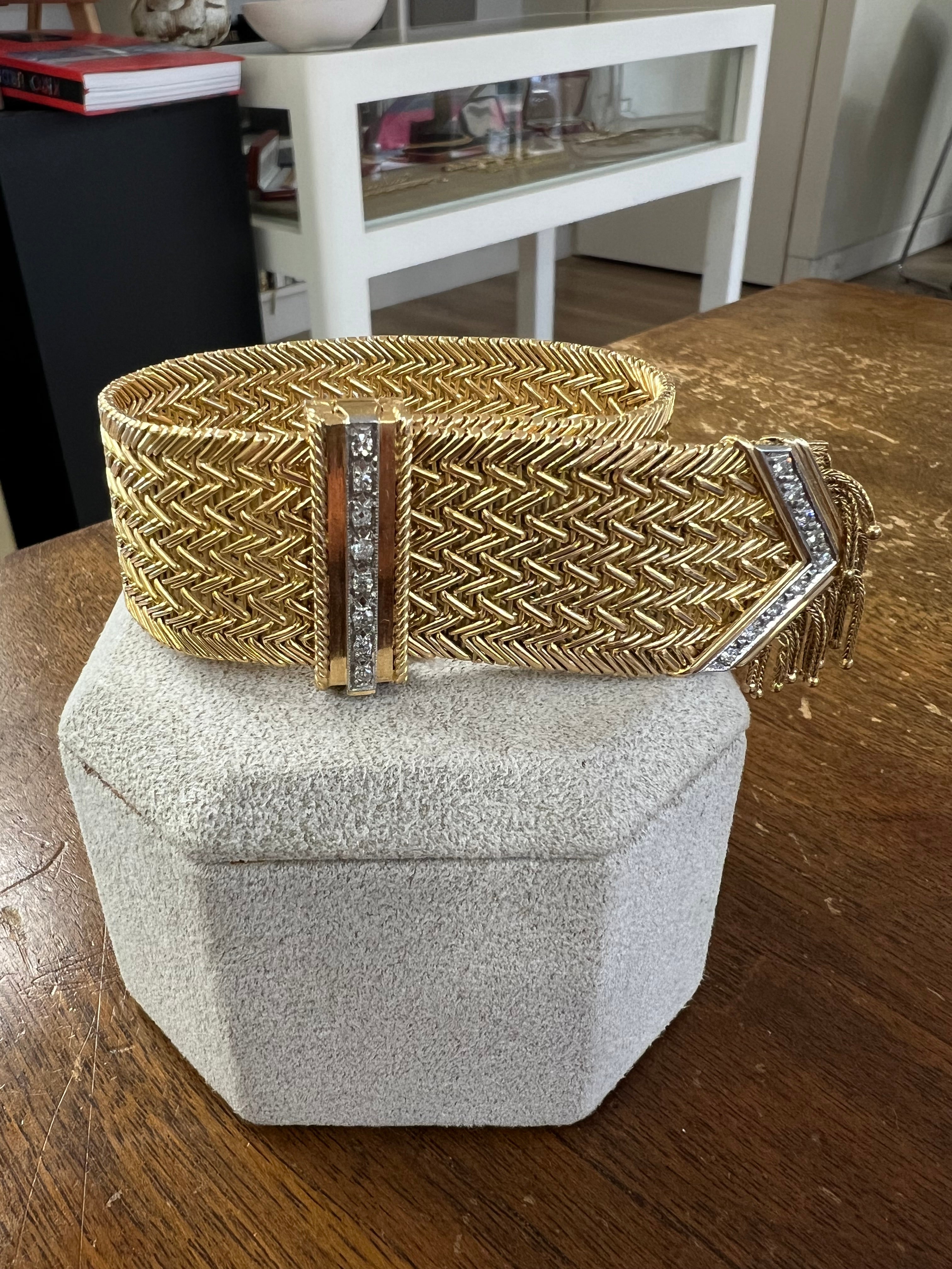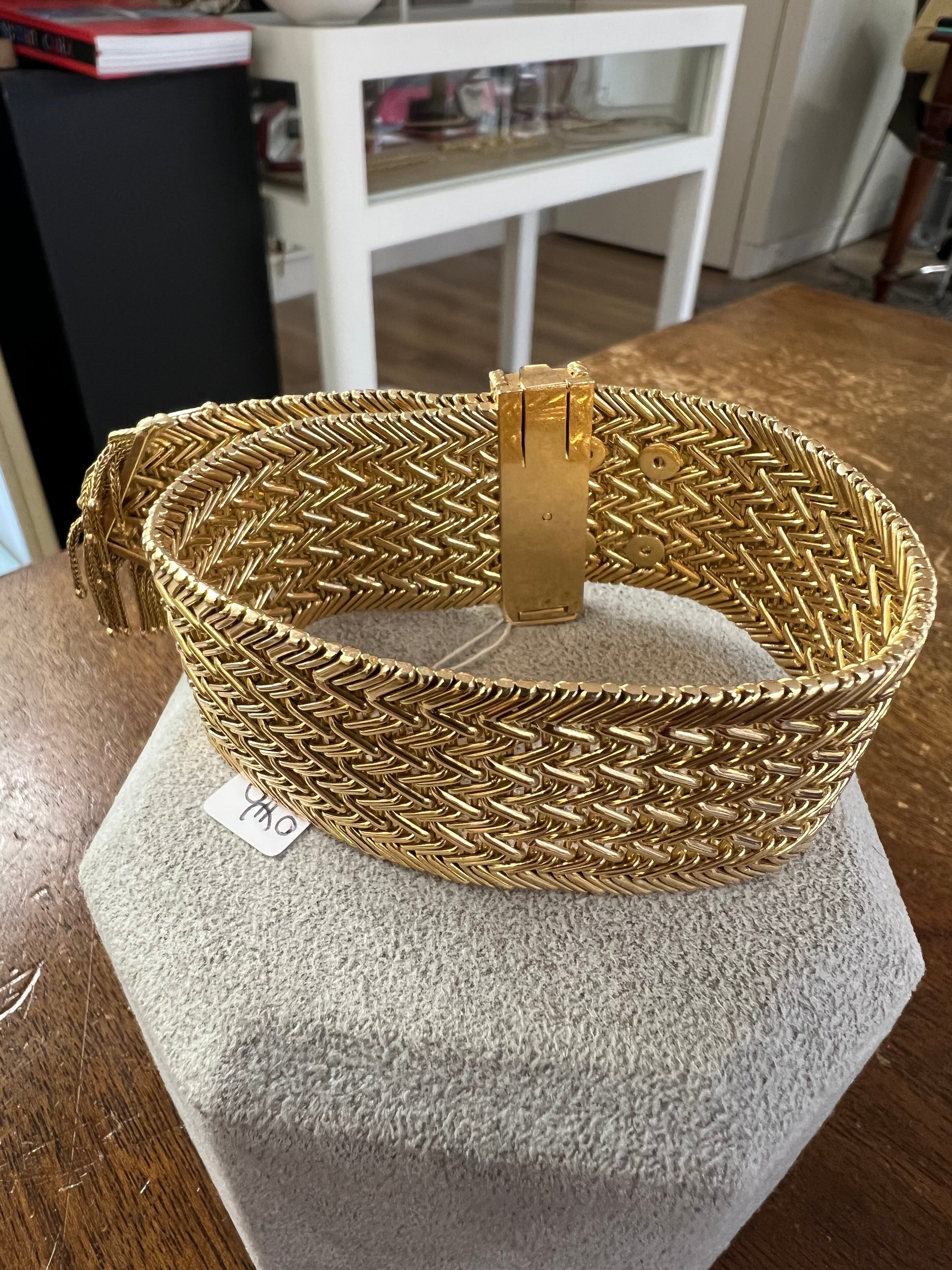 Made in solid yellow gold 18K, it is heavy and weight 97.70 grams.