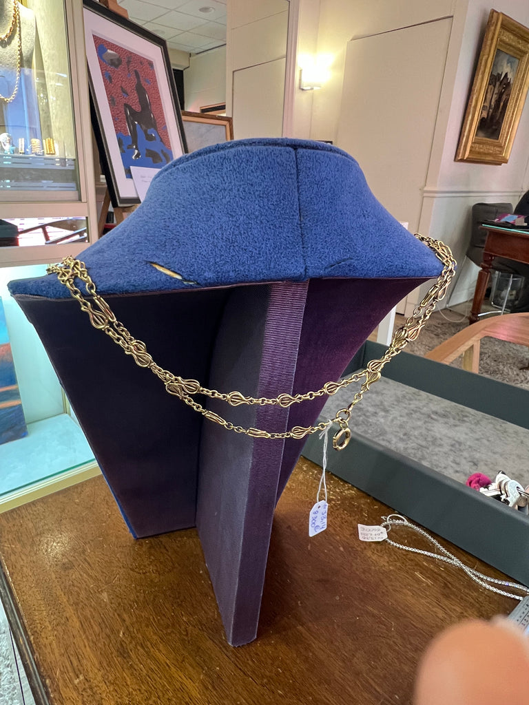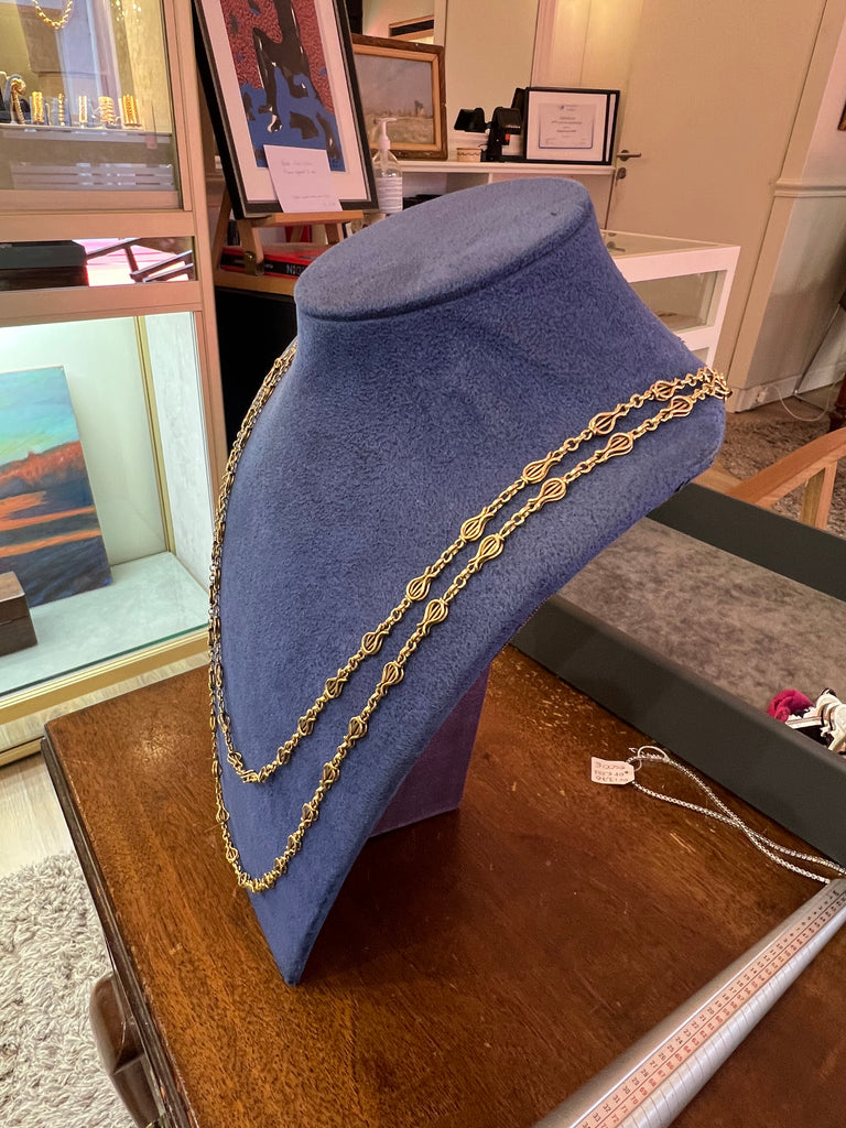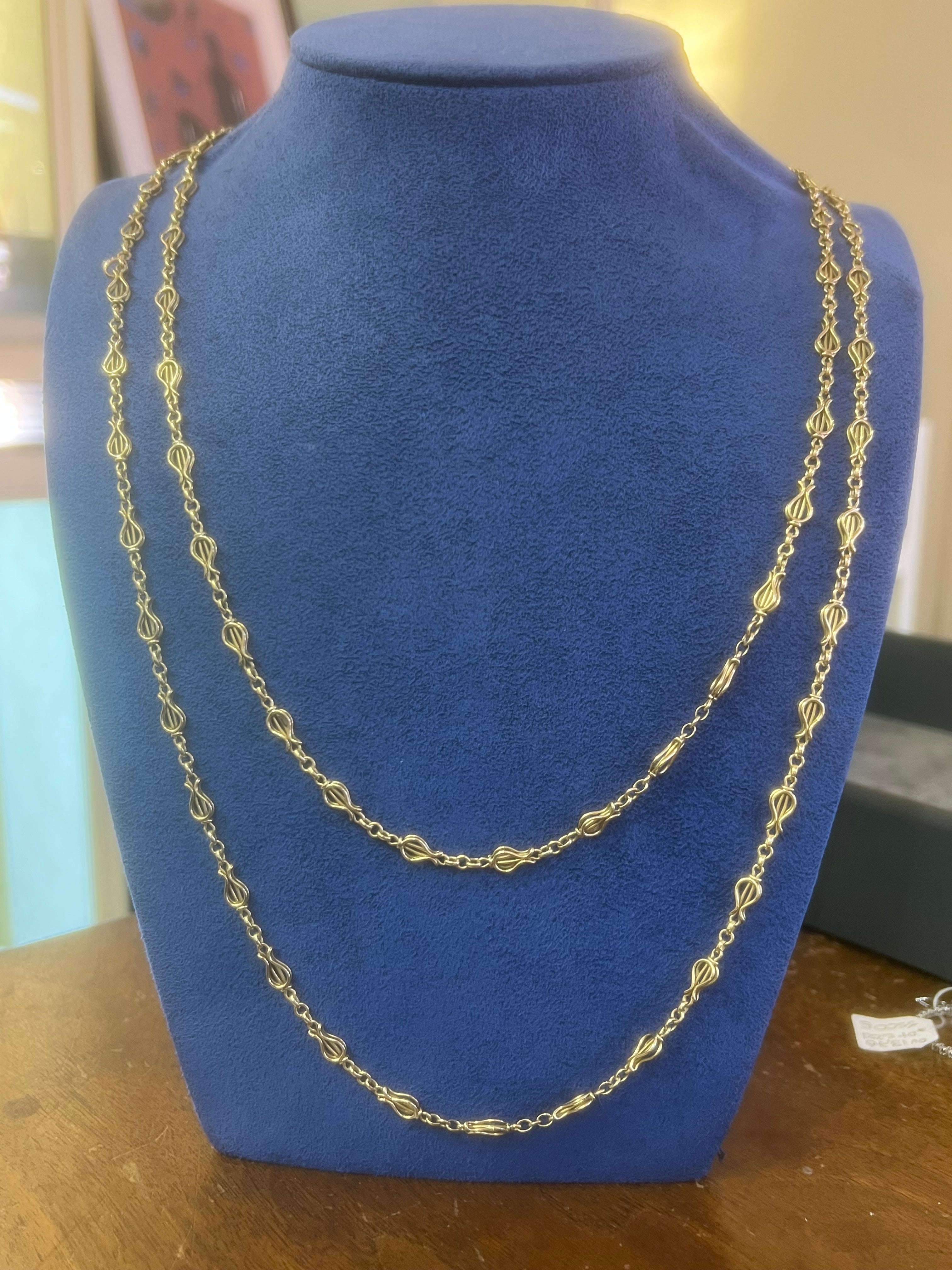 Made in solid yellow gold 18K. It measures 154cm for the length. 5mm width.