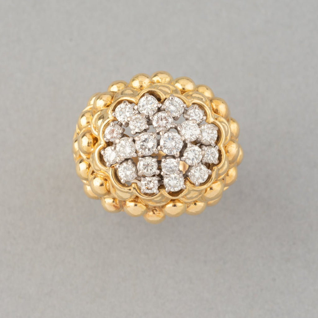 Gold and 1.50 Carats Diamonds Vintage Cocktail Ring