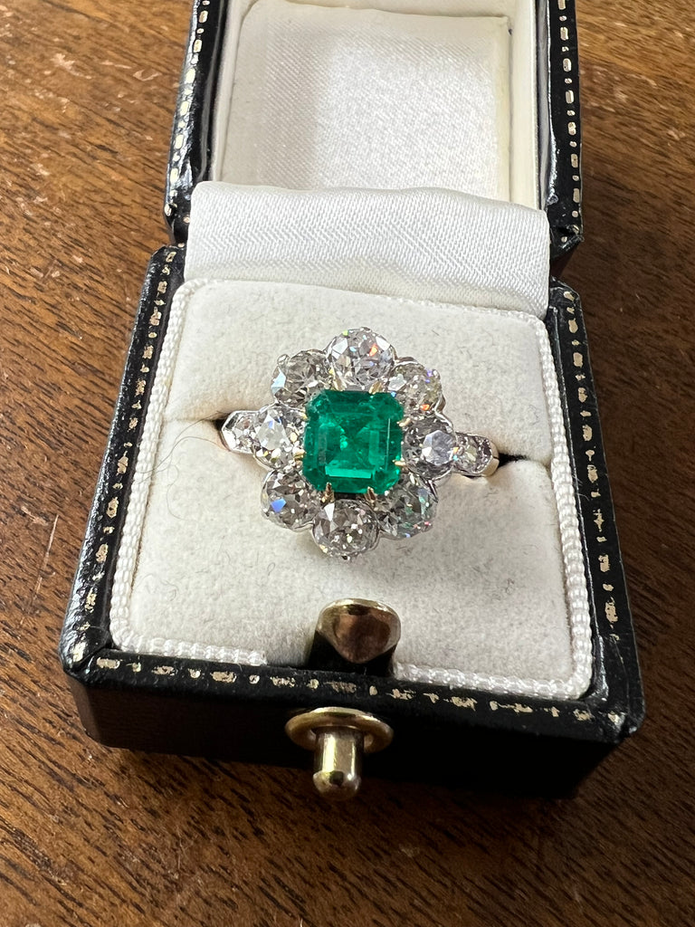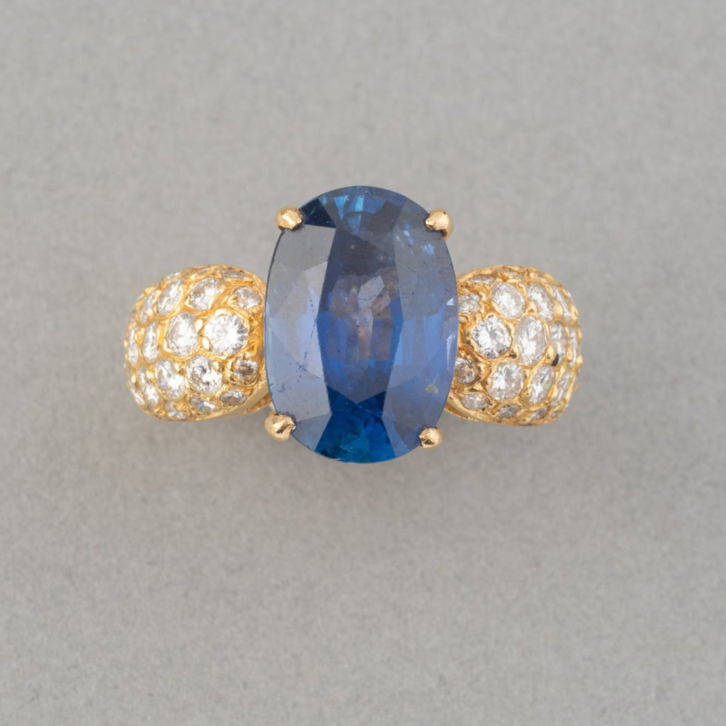 French Vintage 4 Carats Sapphire and Diamonds Ring