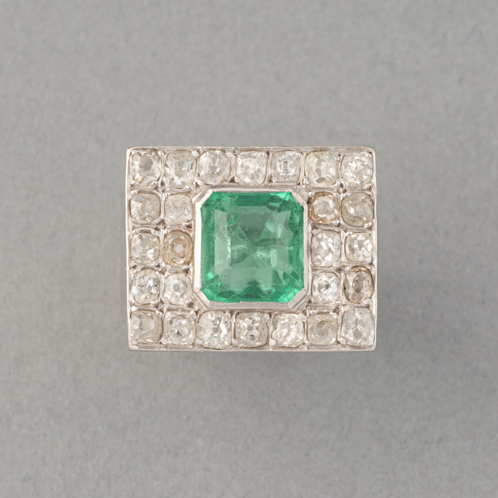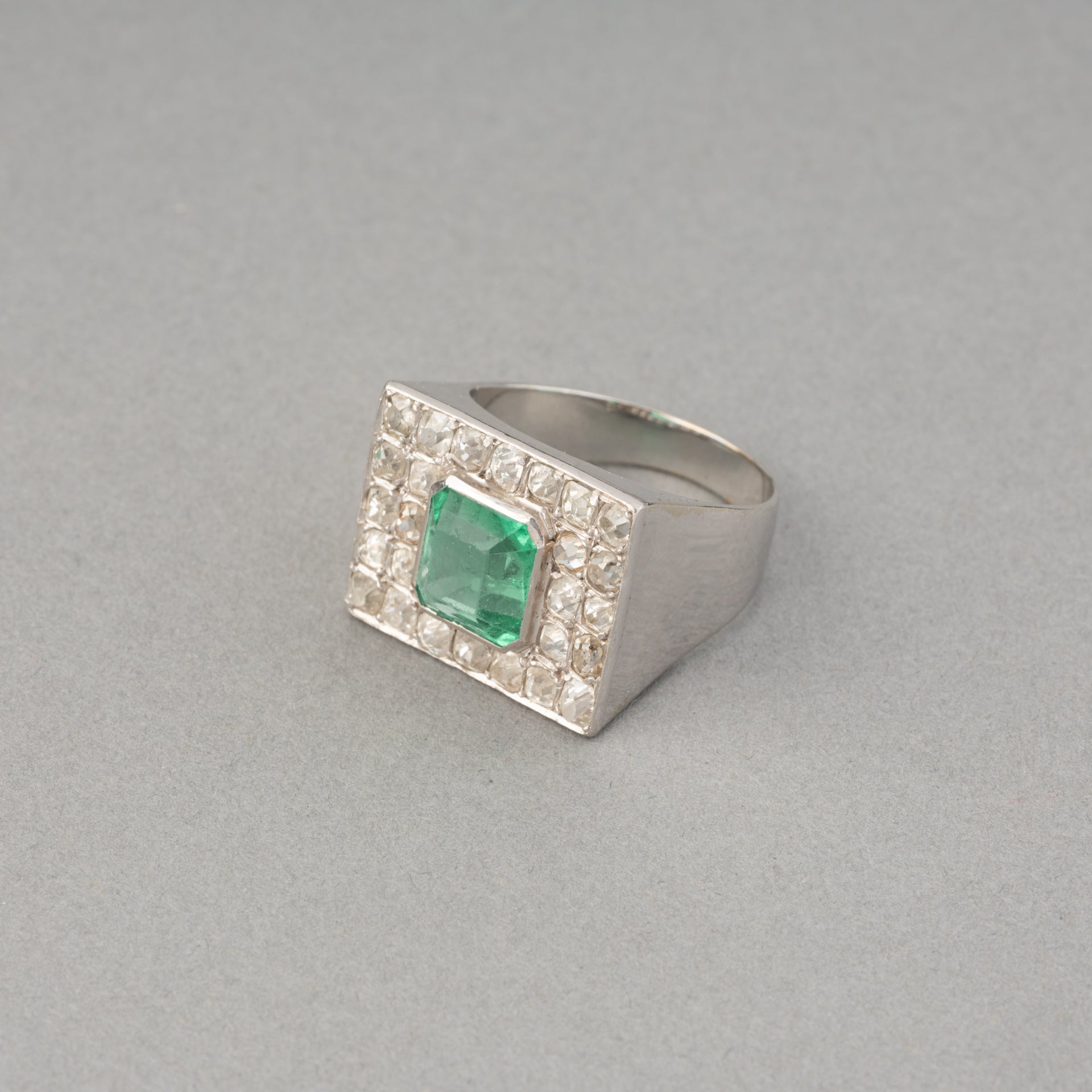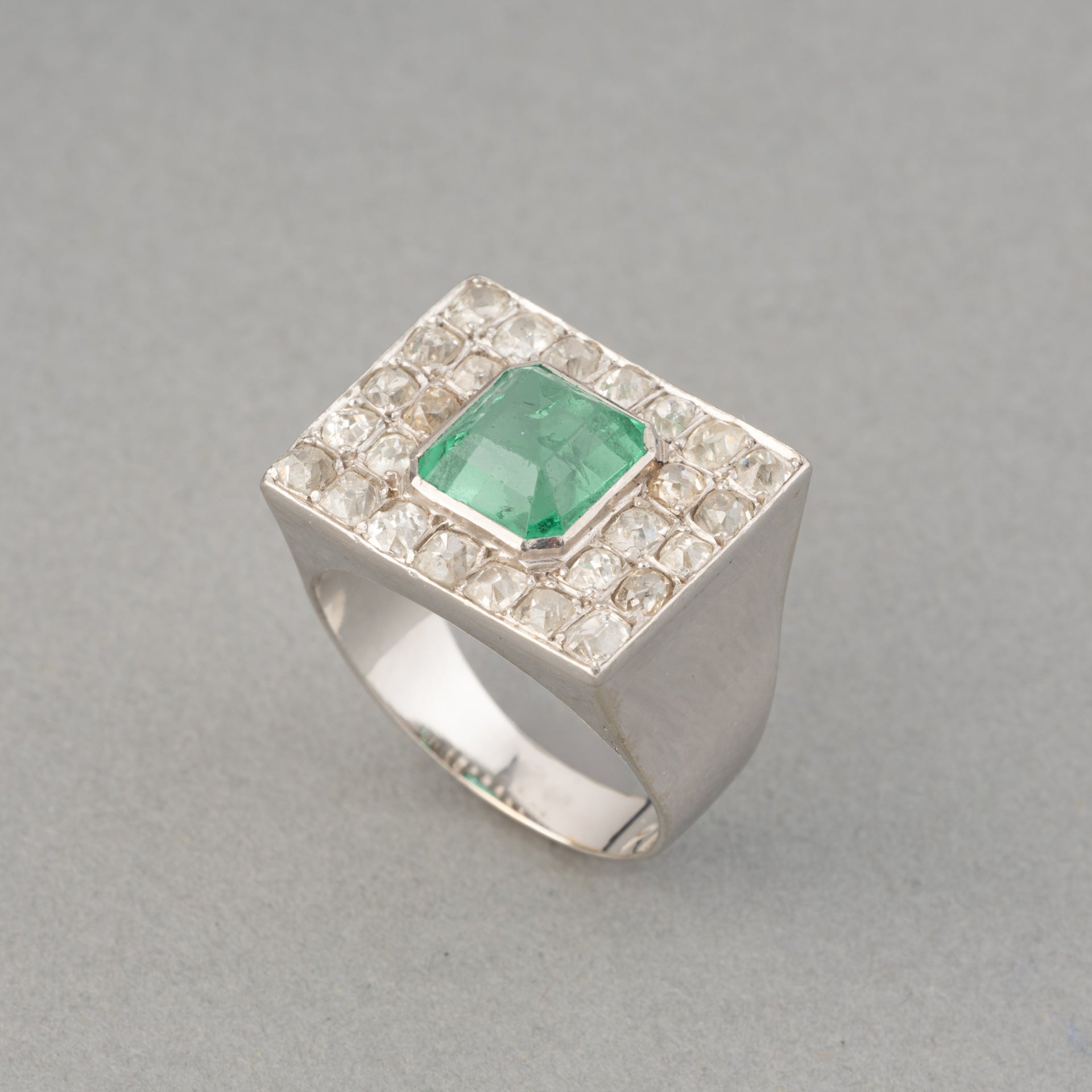 Diamonds and Emerald French Art Deco Ring