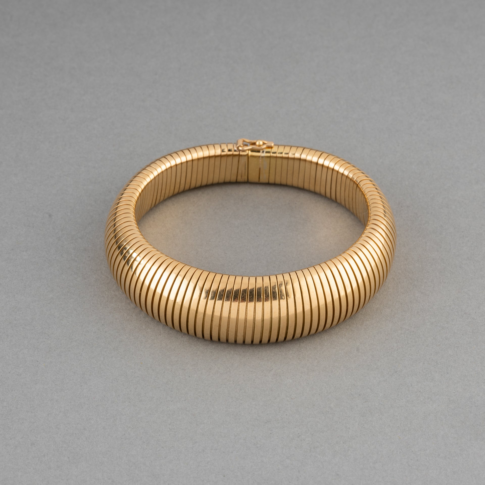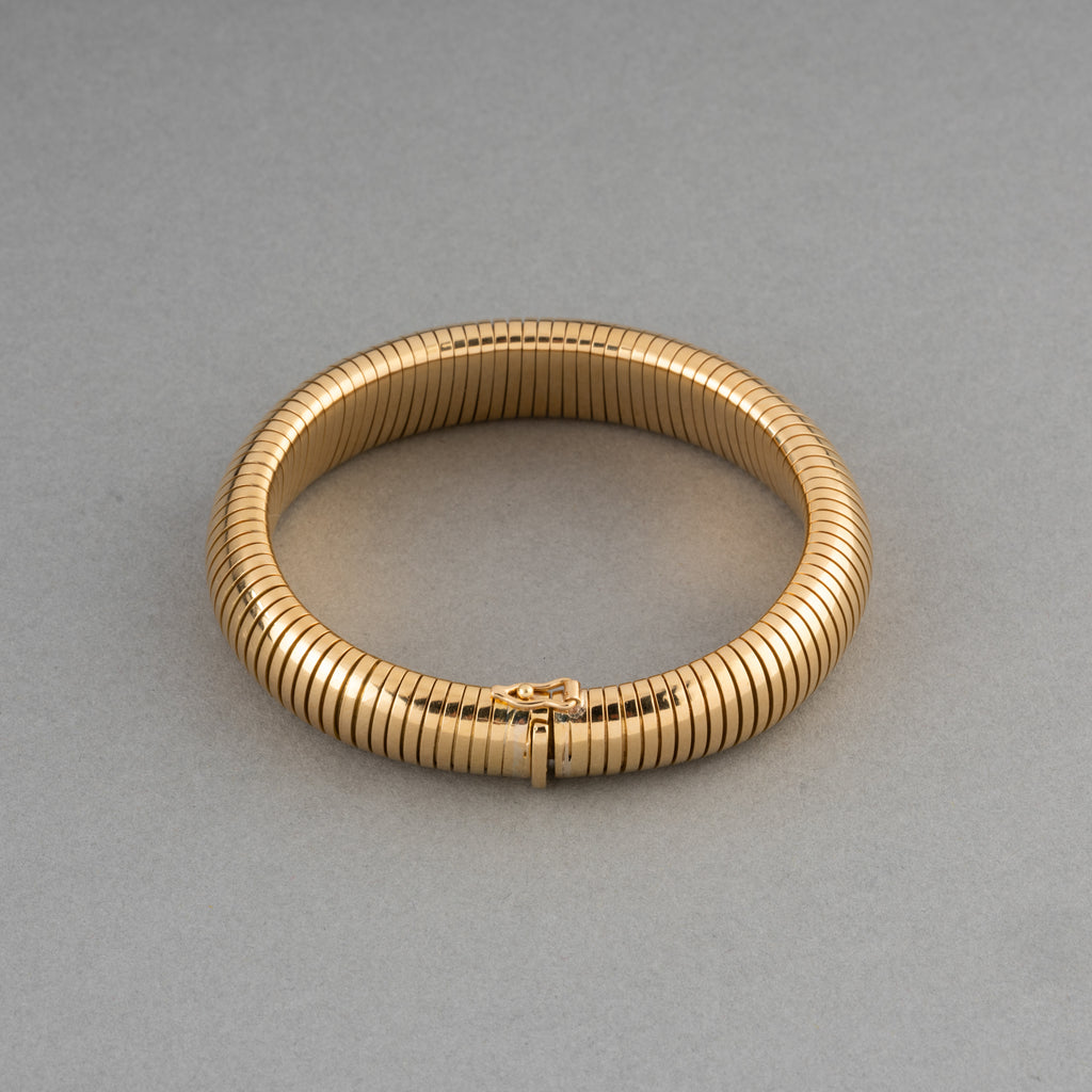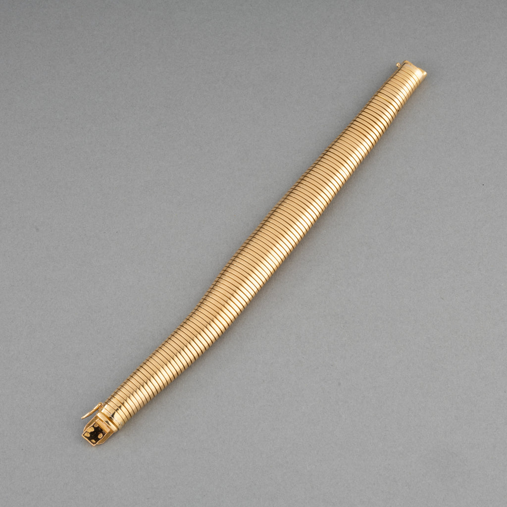 Made in yellow gold 18k, the length is 17cm, 15mm width.