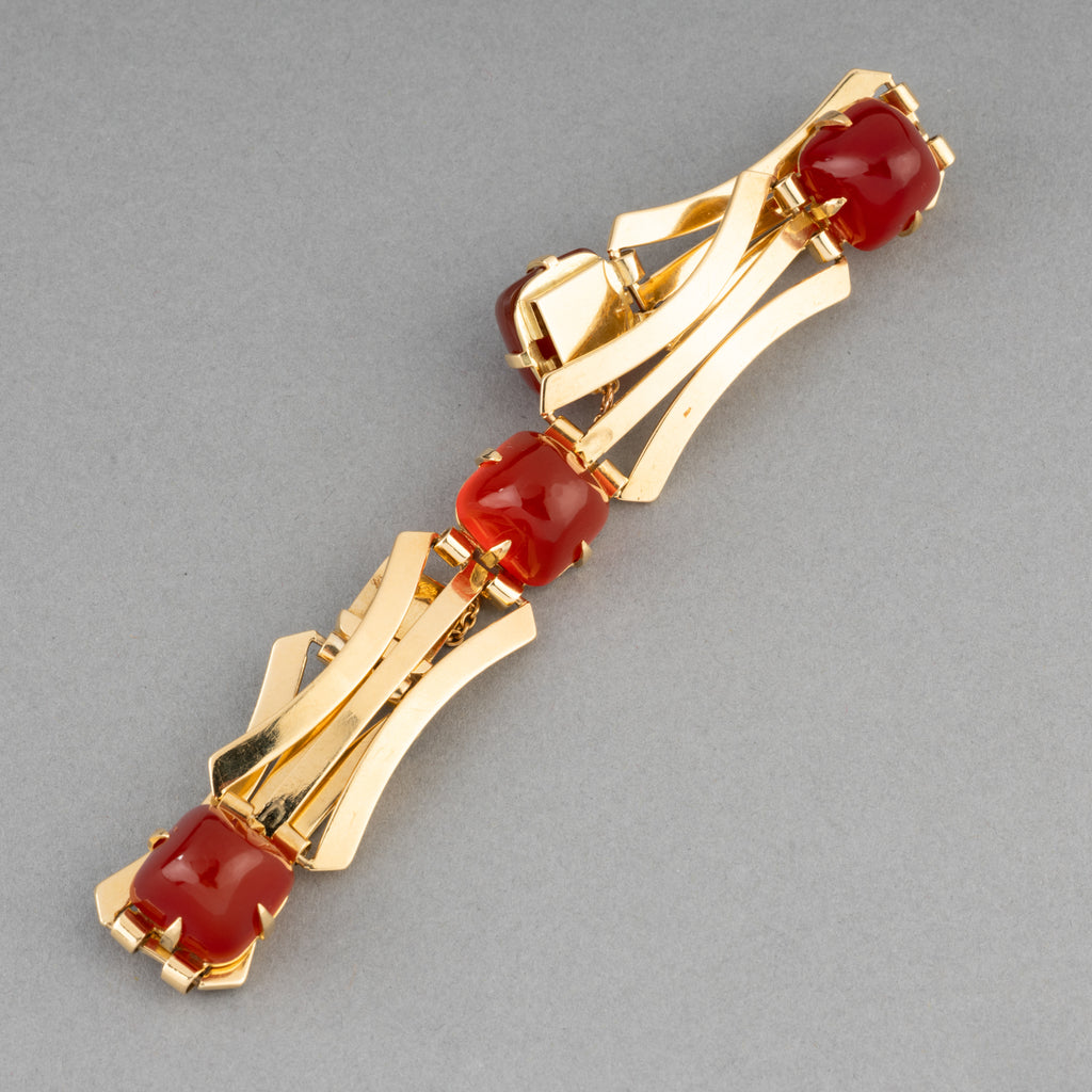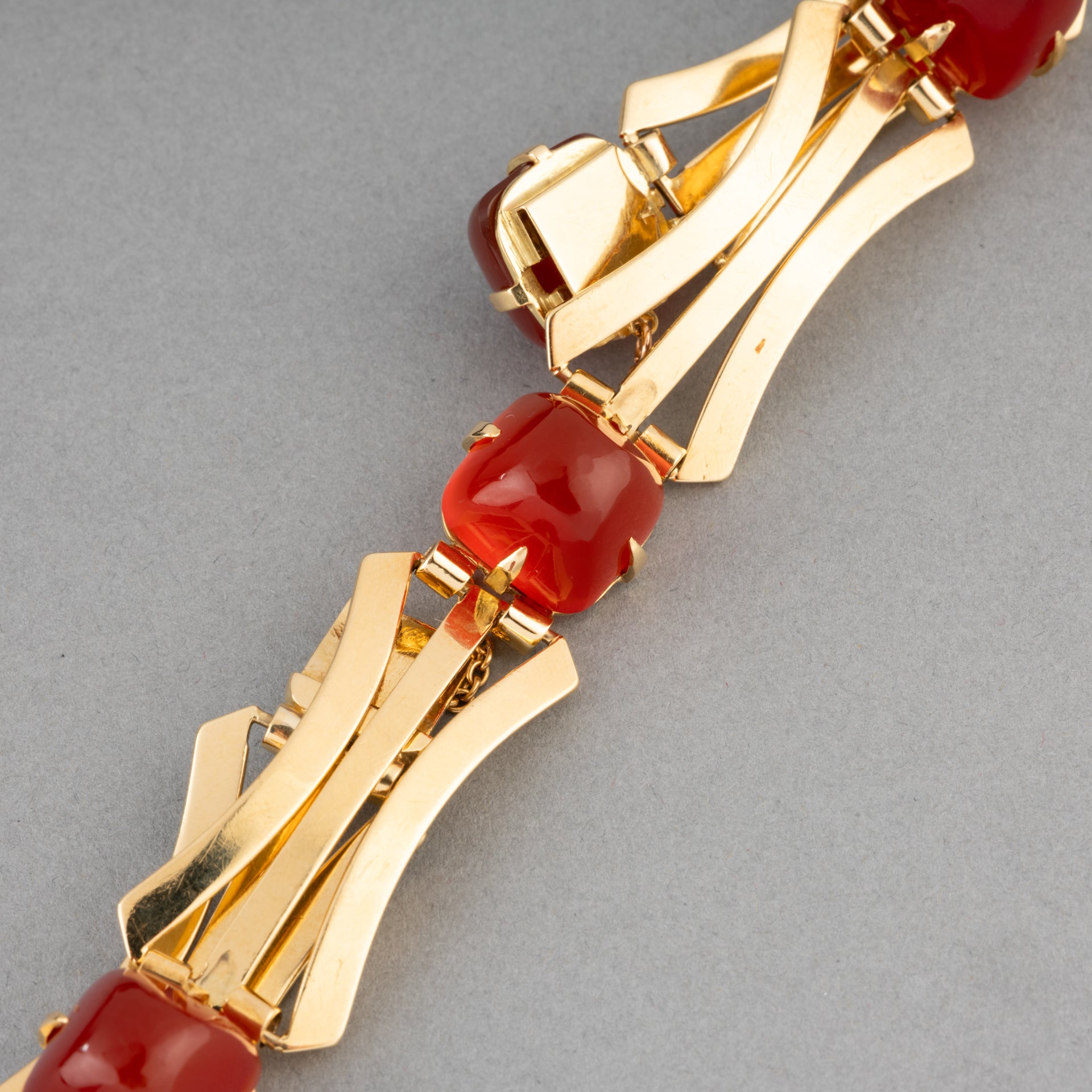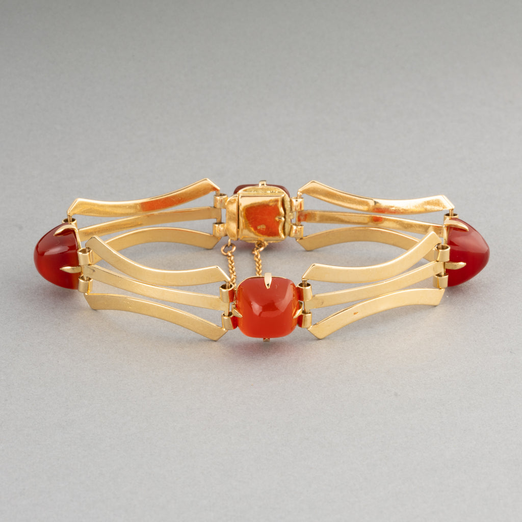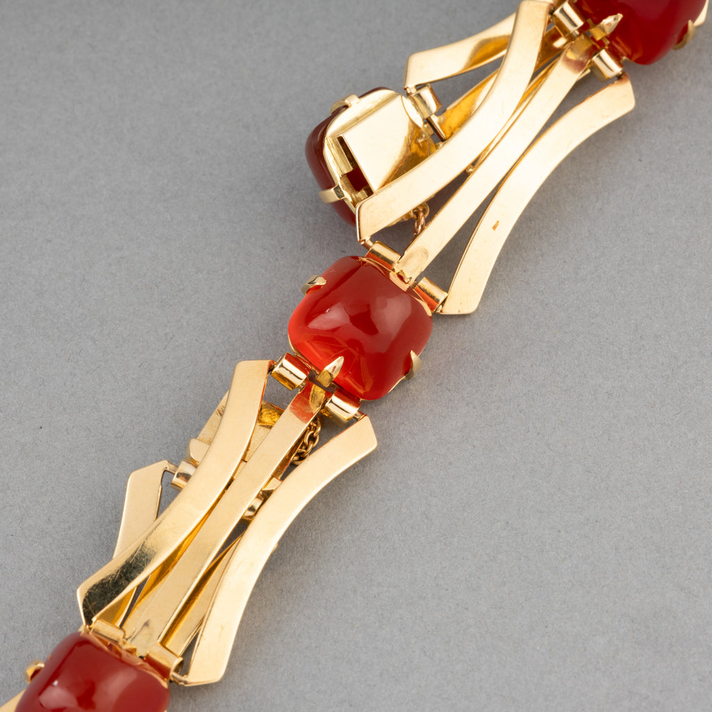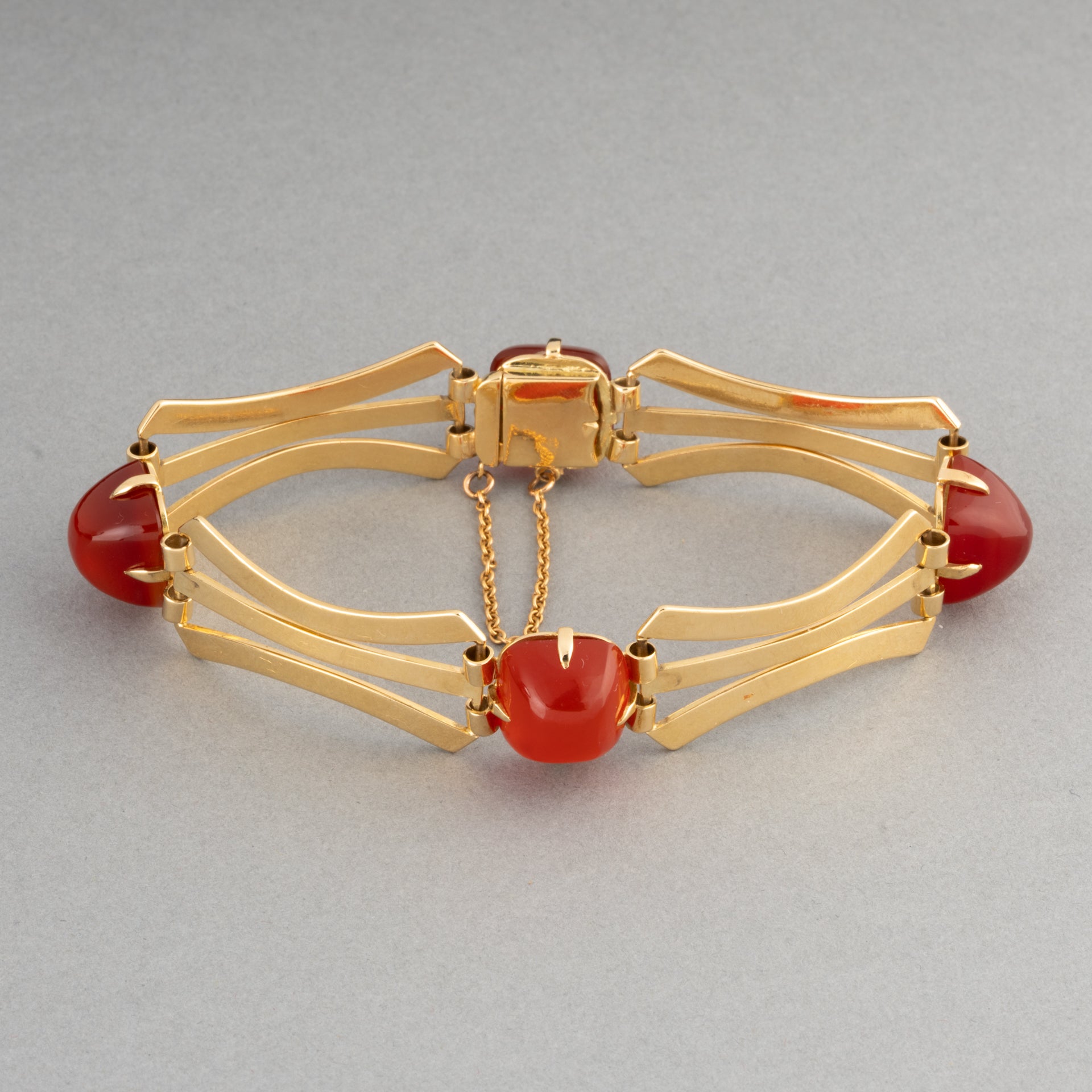 Made in yellow gold 18k, set with Cornaline Cabochons.