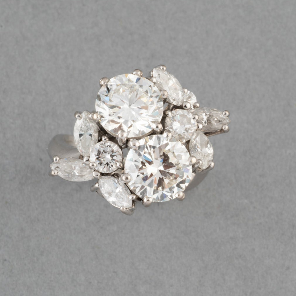 Gold and Diamonds French Vintage Ring 1.76+1.77 carats