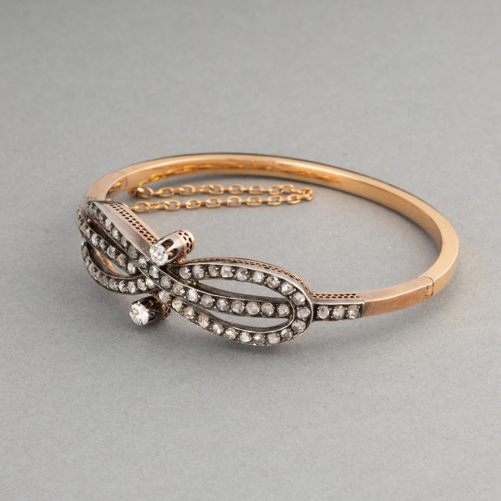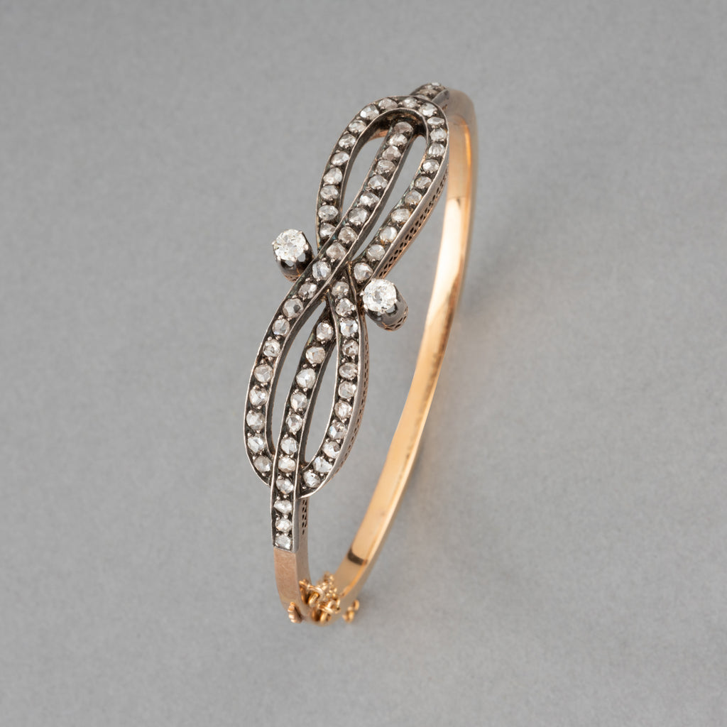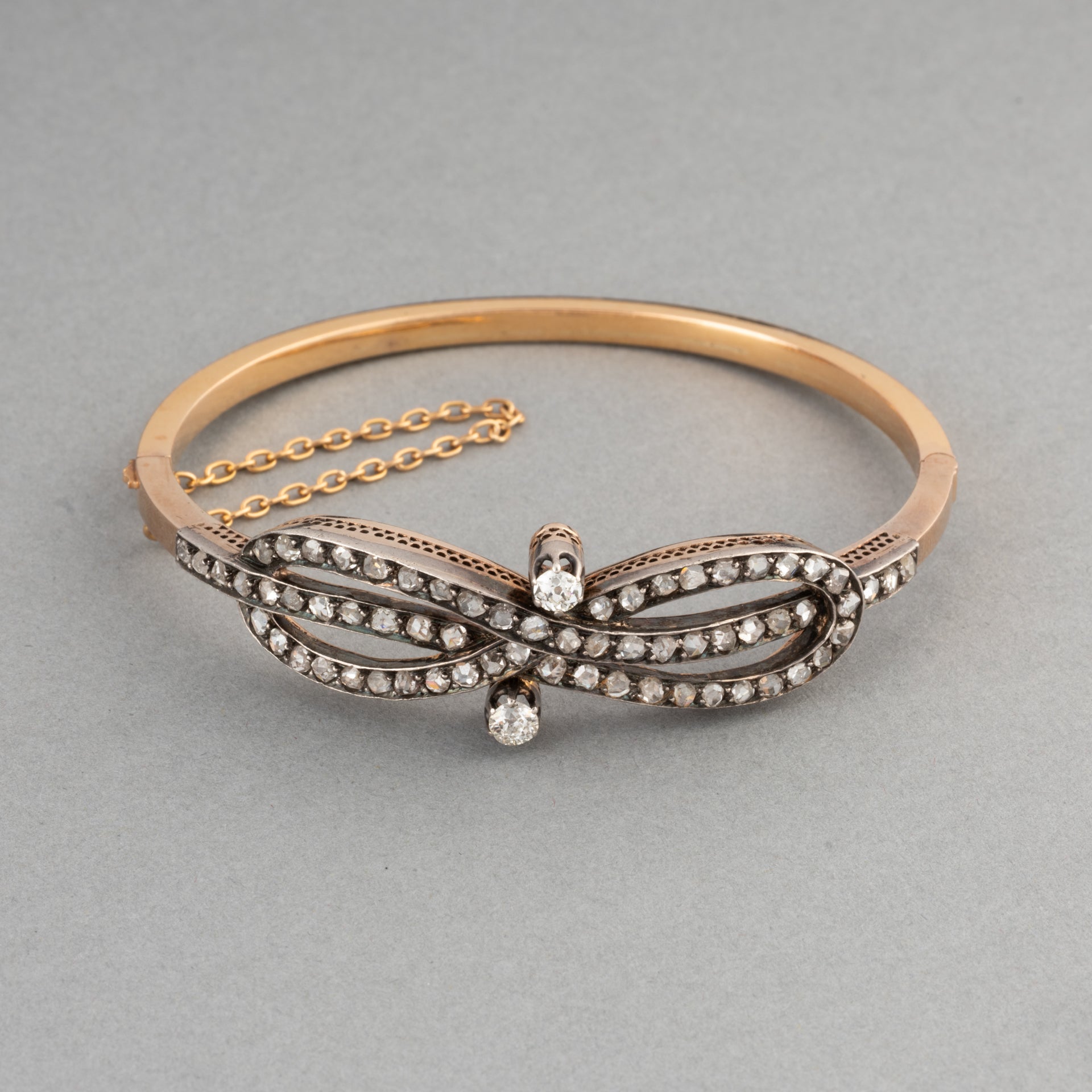 Made in yellow gold 18k and silver, set with 1.50 carats diamonds, Old cut and rose cut diamonds.